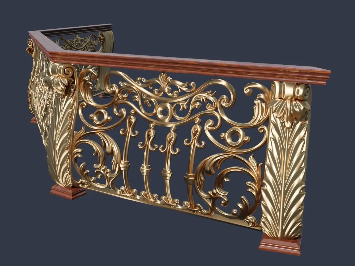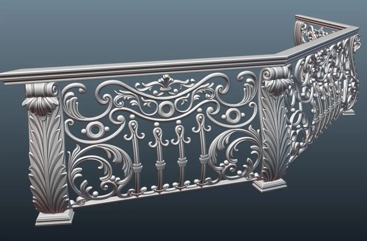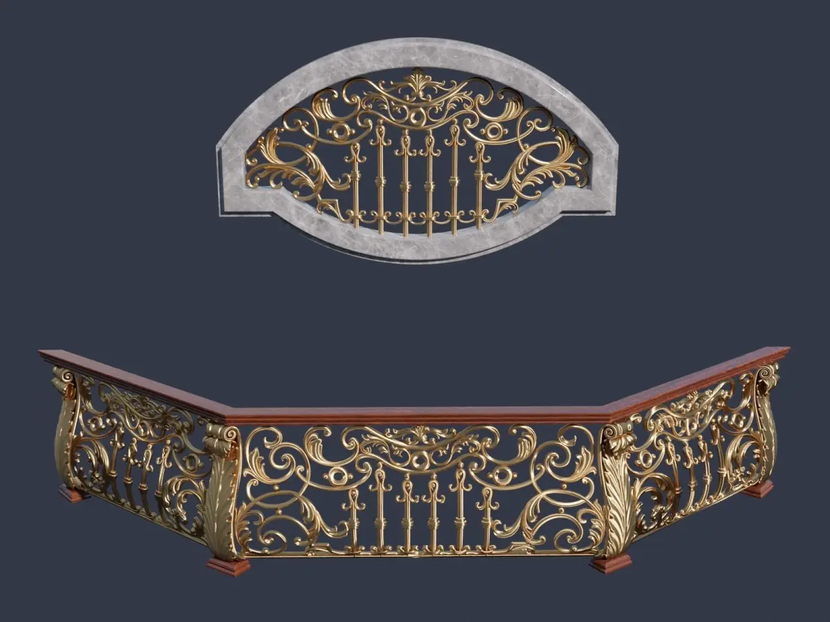Full editable composite 3D low-poly model of decorative forged railing and fence lattice