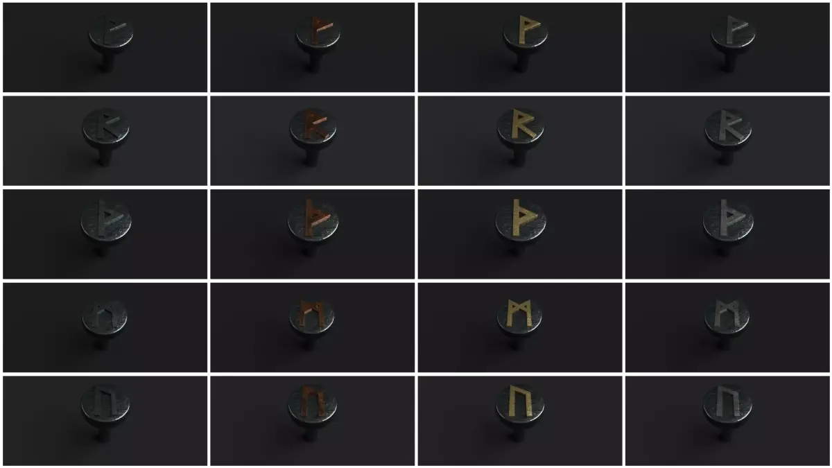 FORGED RIVETS WITH NORDIC RUNES – 19 Metal Rivets (PBR 4K Textures)