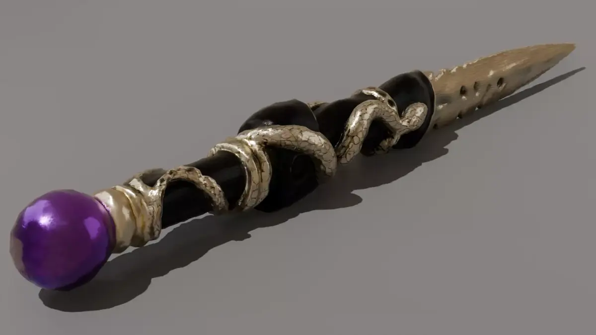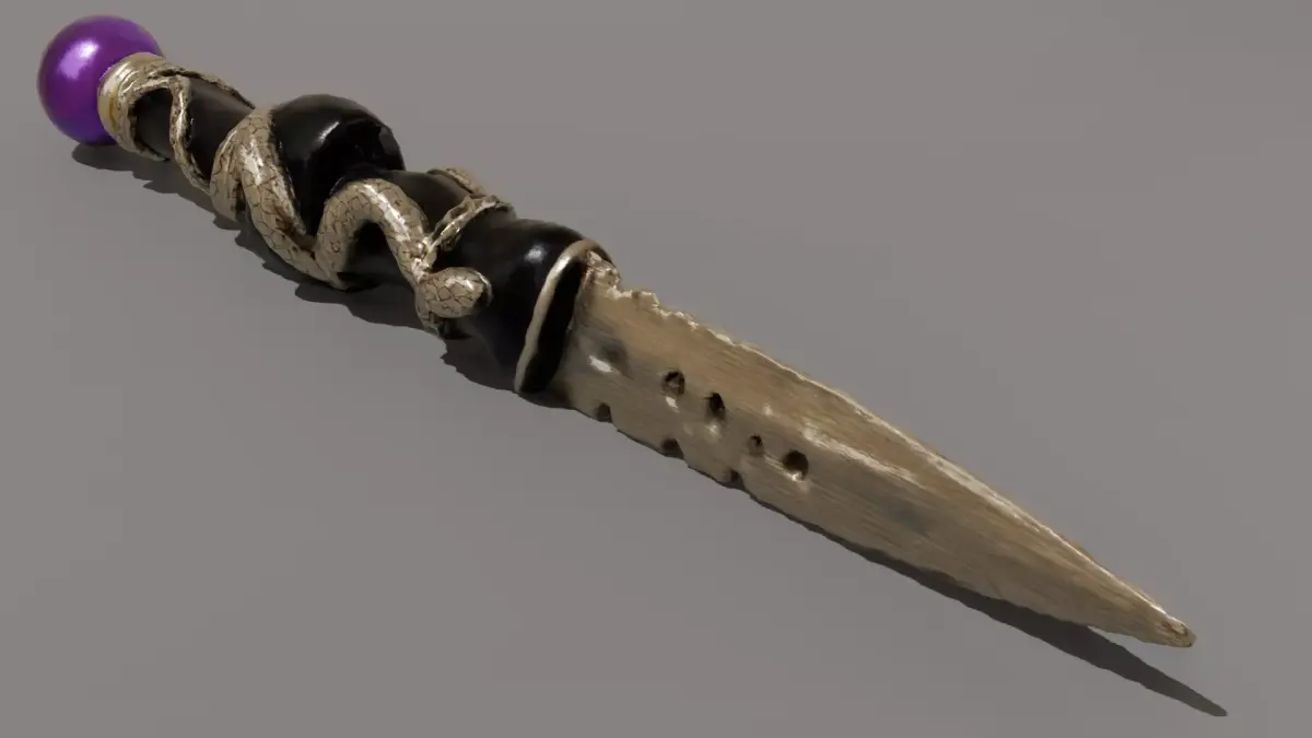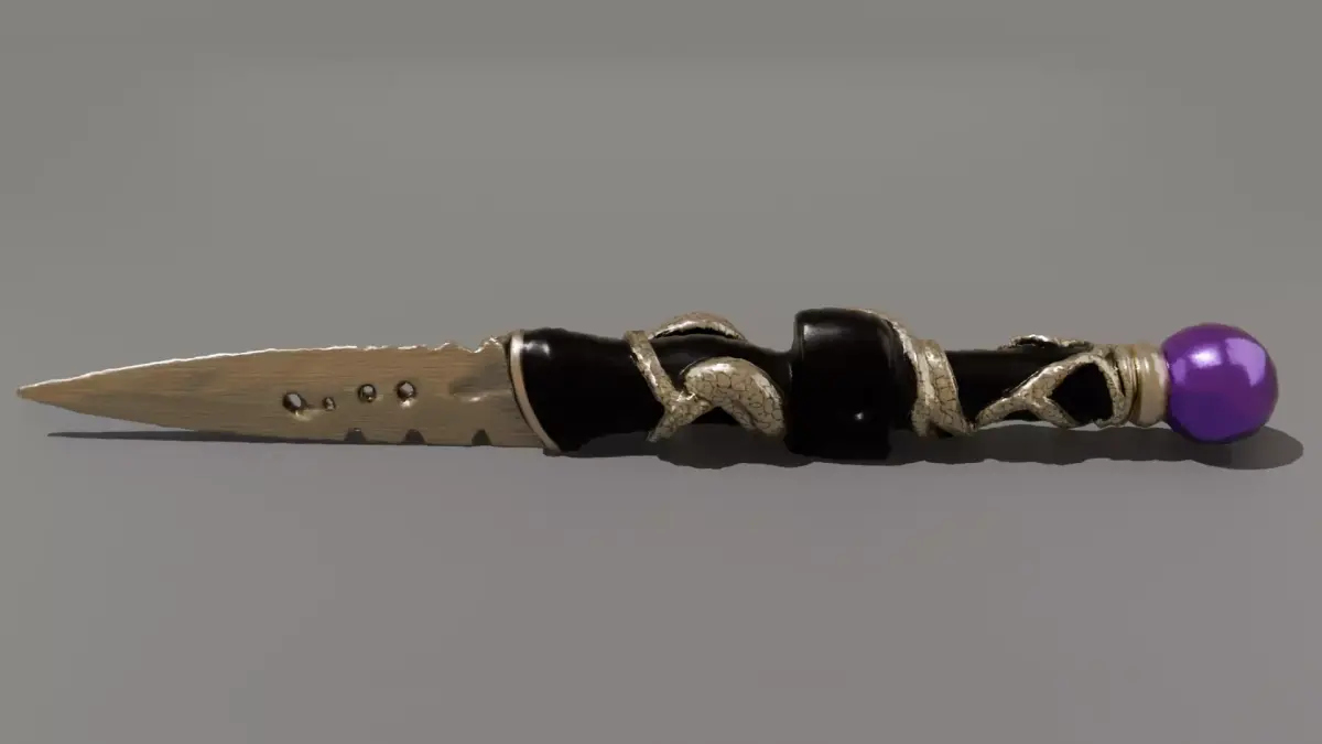 A dark fantasy dagger featuring a serpent-inspired design wrapped around the handle and blade. The stylized snake motif gives the weapon a mysterious and dangerous character, making it suitable for assassins, cultists, or cursed warriors in fantasy worlds.