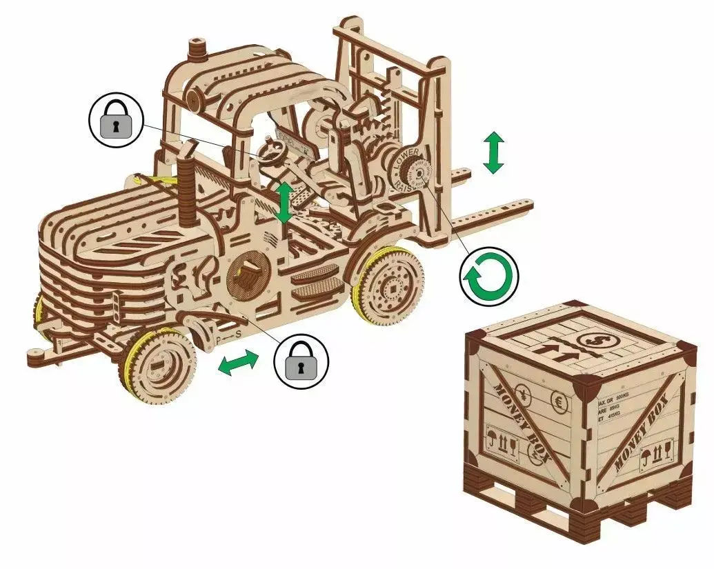 Bring industrial mechanics to life with this 3D wooden forklift mechanical puzzle model. Designed with realistic gear motion, lifting arms, and a detachable crate, this model perfectly replicates the look and function of a real forklift. Crafted from high-quality laser-cut plywood, each part fits seamlessly without glue or tools. Ideal for adults, hobbyists, and mechanical enthusiasts, this model combines creativity, precision, and motion engineering. Includes CAD + CDR files and step-by-step assembly instructions for easy building and customization.Key Highlights:• 3D wooden forklift mechanical puzzle with working lift arms• Realistic gear system for smooth movement• Eco-friendly laser-cut plywood, no glue needed• Includes CAD + CDR + assembly guide• Perfect for DIY enthusiasts, model builders, and collectors• Functional and decorative — ideal as a showpiece or gift• Enhances understanding of mechanics and motion design