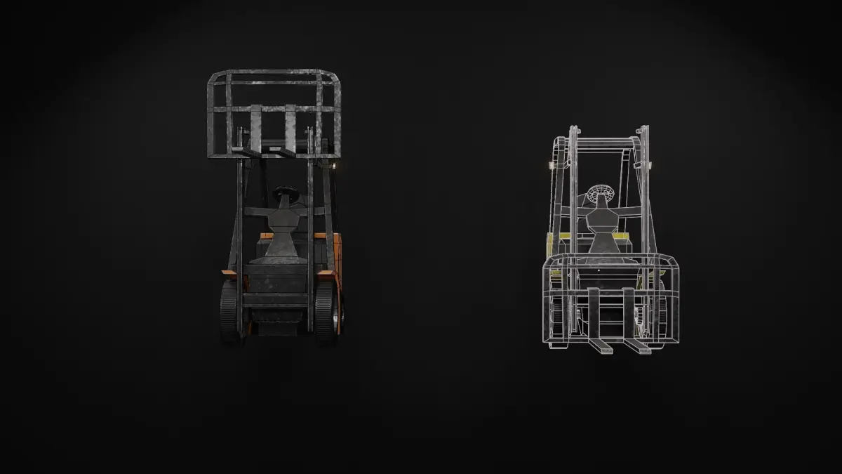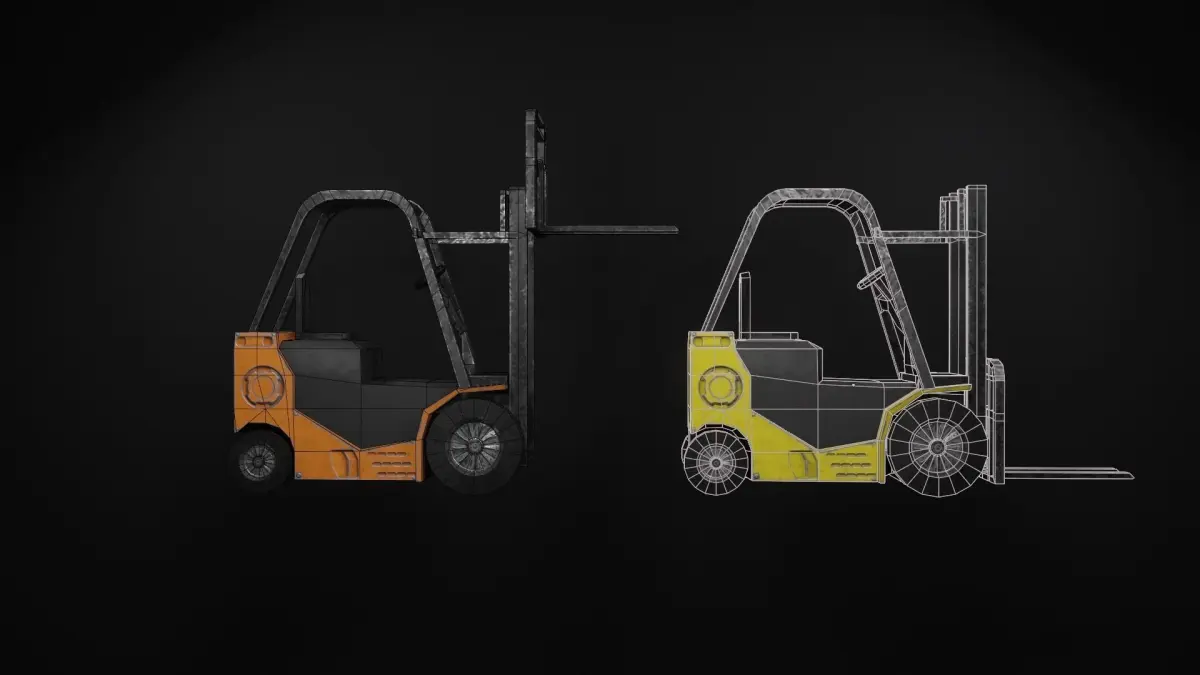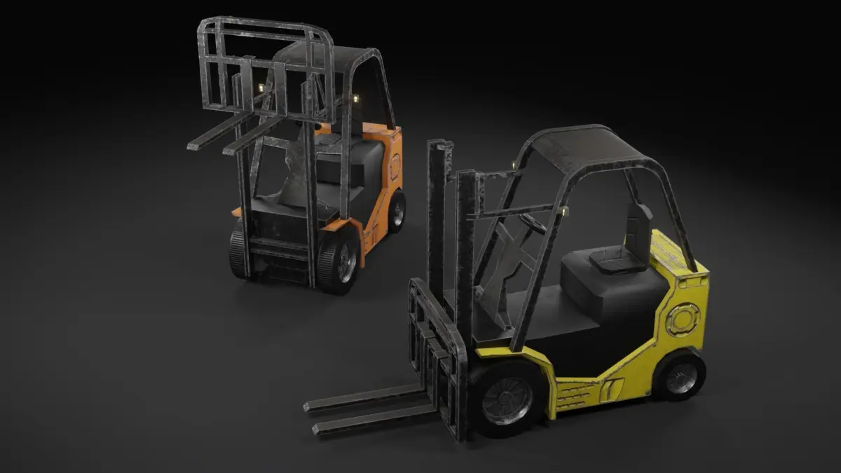 Forklift model optimized for video game. The design is invented. Can be used as element of decor.