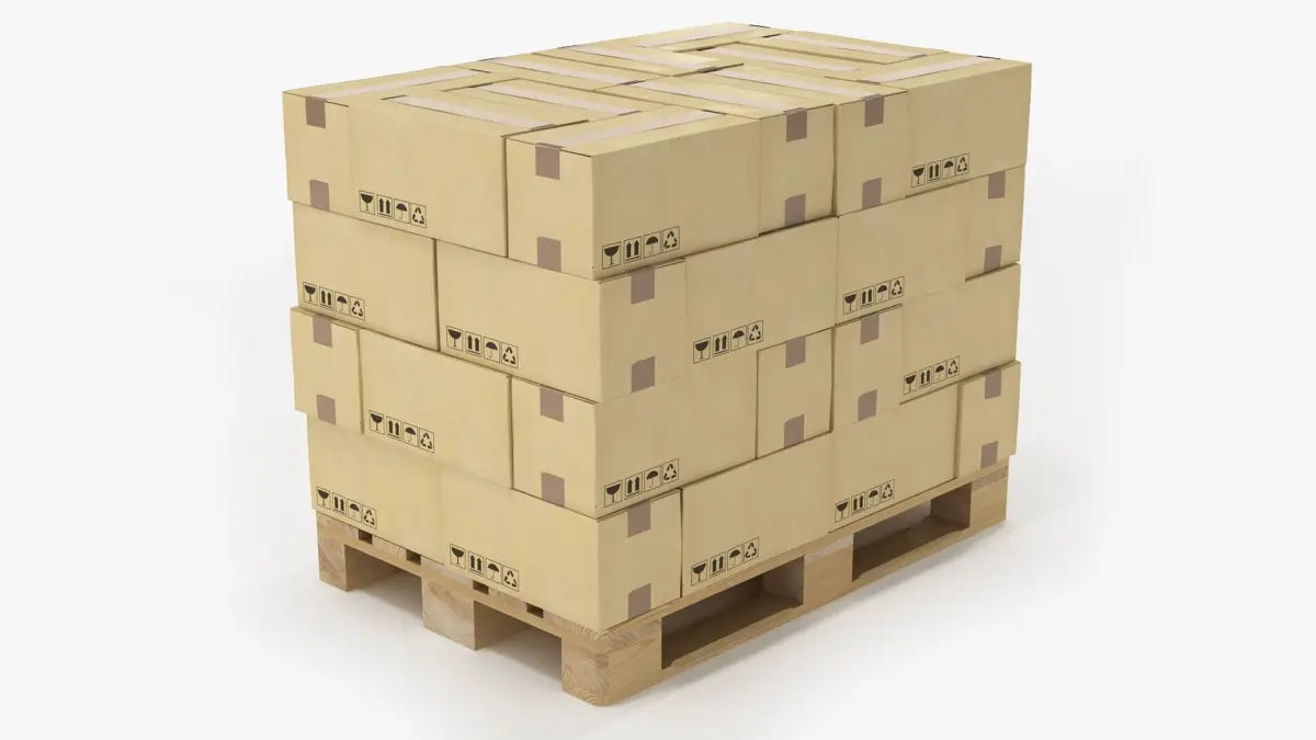 Realistic 3d model of Forklift Toyota 8FD25 and Pallet Set.