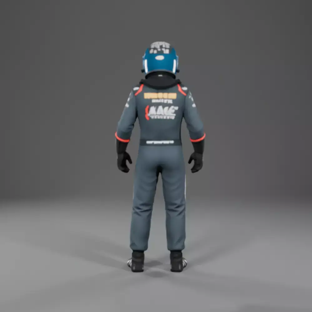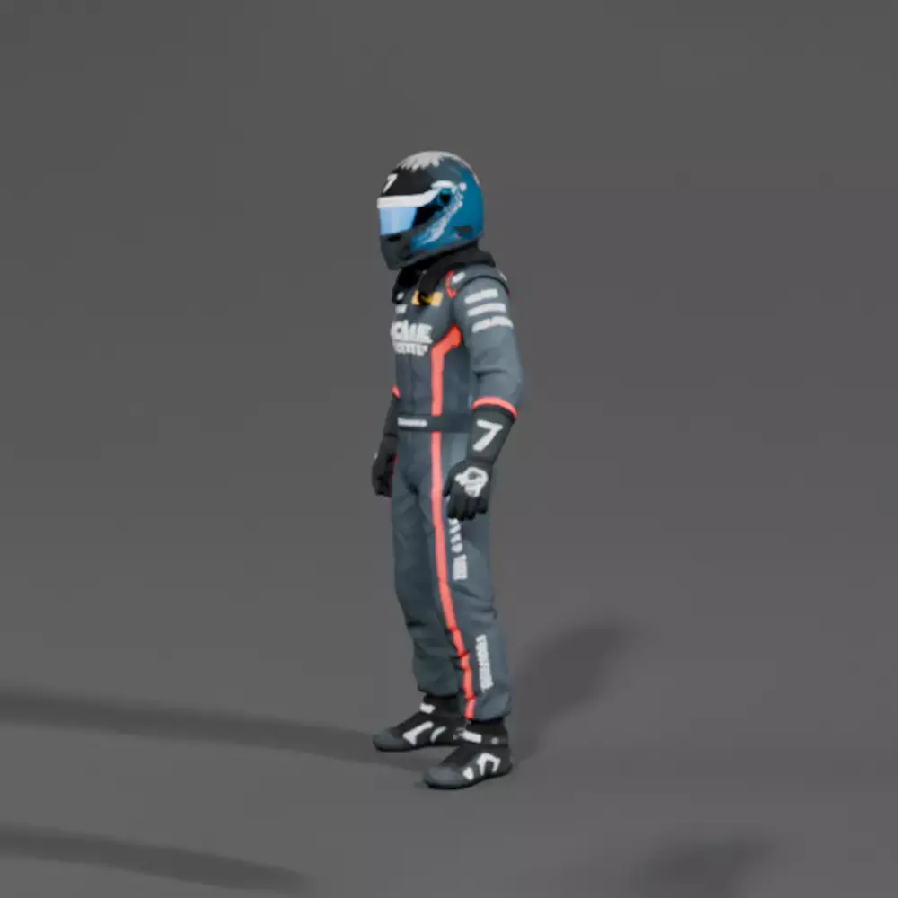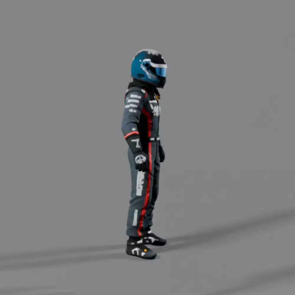 High-quality Formula car driver male character CGI 3D model, designed for games, animations, cinematics, and renders.This model is NOT for 3D printing and is created specifically for digital use such as real-time engines and visual productions.