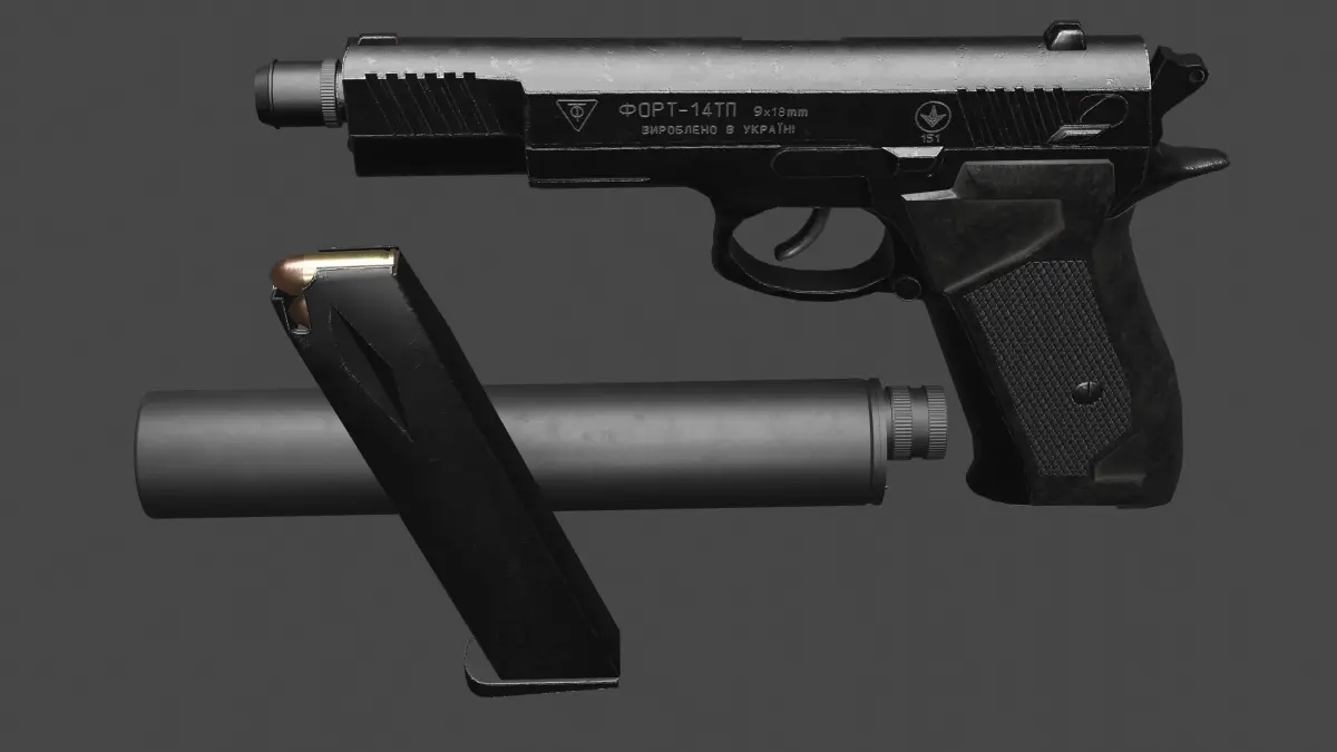 The Fort 14 pistol has been developed by the 2003 at the state-owned FORT factory for Ukrainian security and police forces. In attempt to produce more powerful weapon, than the earlier 9x18mm PM Fort 12 pistol, the Fort 14 has been initially designed for the more powerful 9×19 Luger / Parabellum ammunition, and thus has locked breech design with longer barrel. Later on, designers switched back to the less powerful 9×18 PM/Makarov ammunition, which usually does not require locked breech system, so new pistol has been redesigned with the plain blowback system.