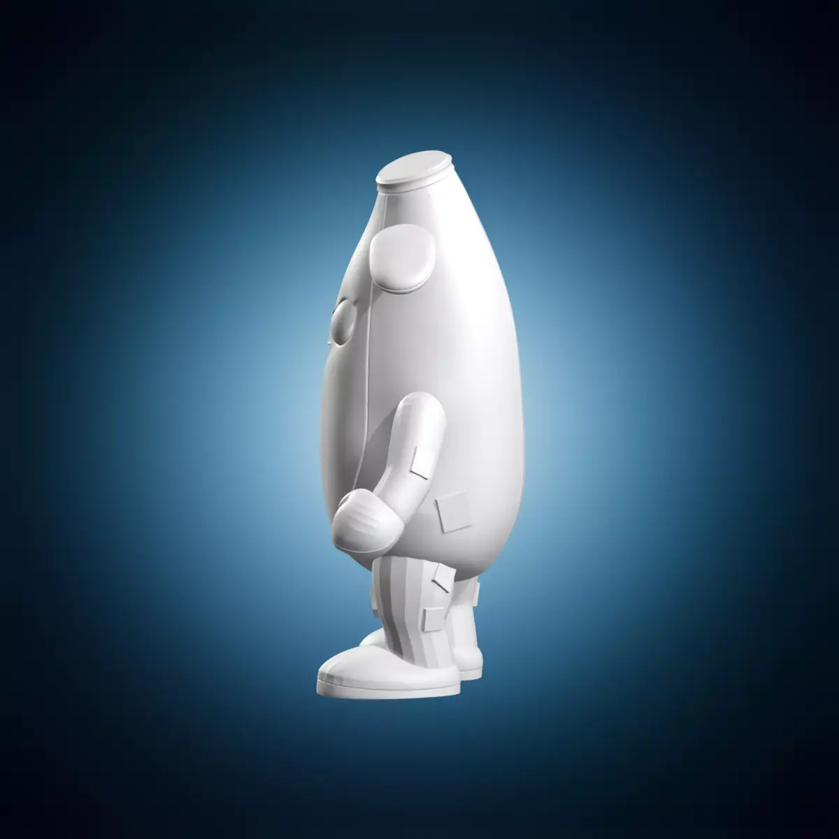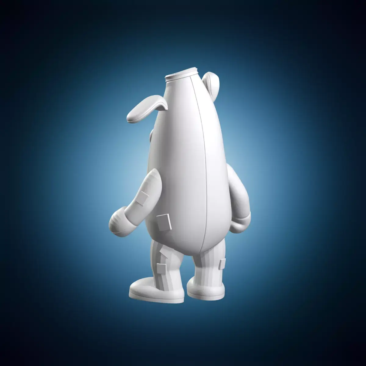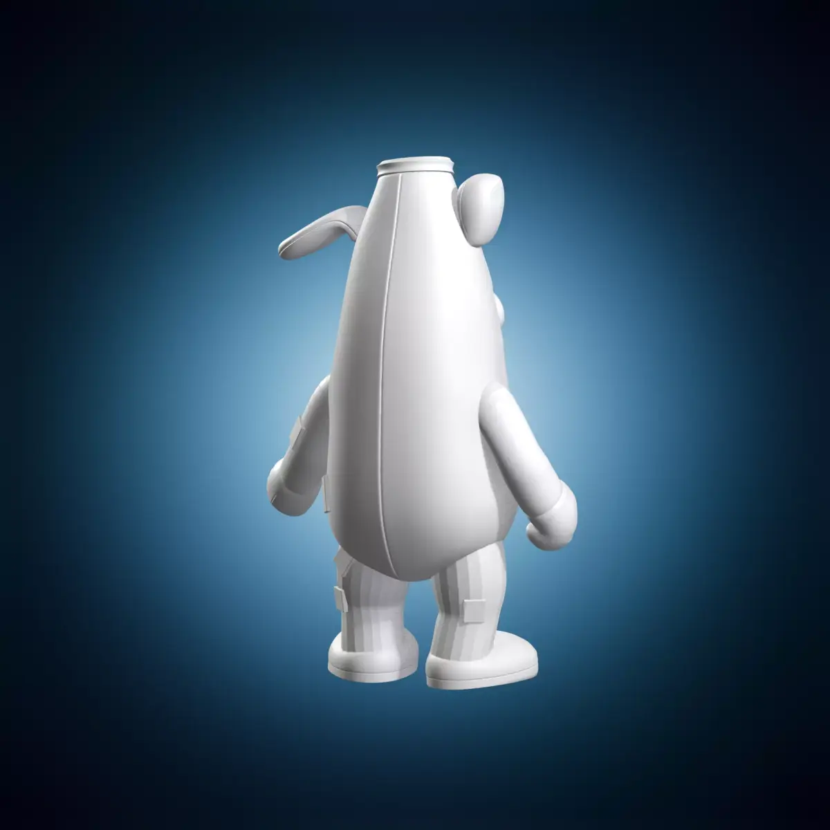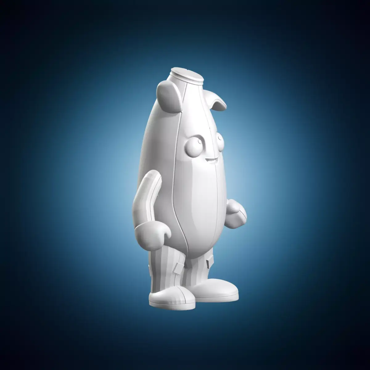A detailed digital model of Peely from Fortnite in a bone banana costume. The model features intricate details and textures, making it suitable for use in animation, gaming, or architectural visualization. It is created using 3D modeling software and can be used as a standalone object or integrated into larger scenes. Suitable for use in various projects, including video games, films, and virtual reality applications.