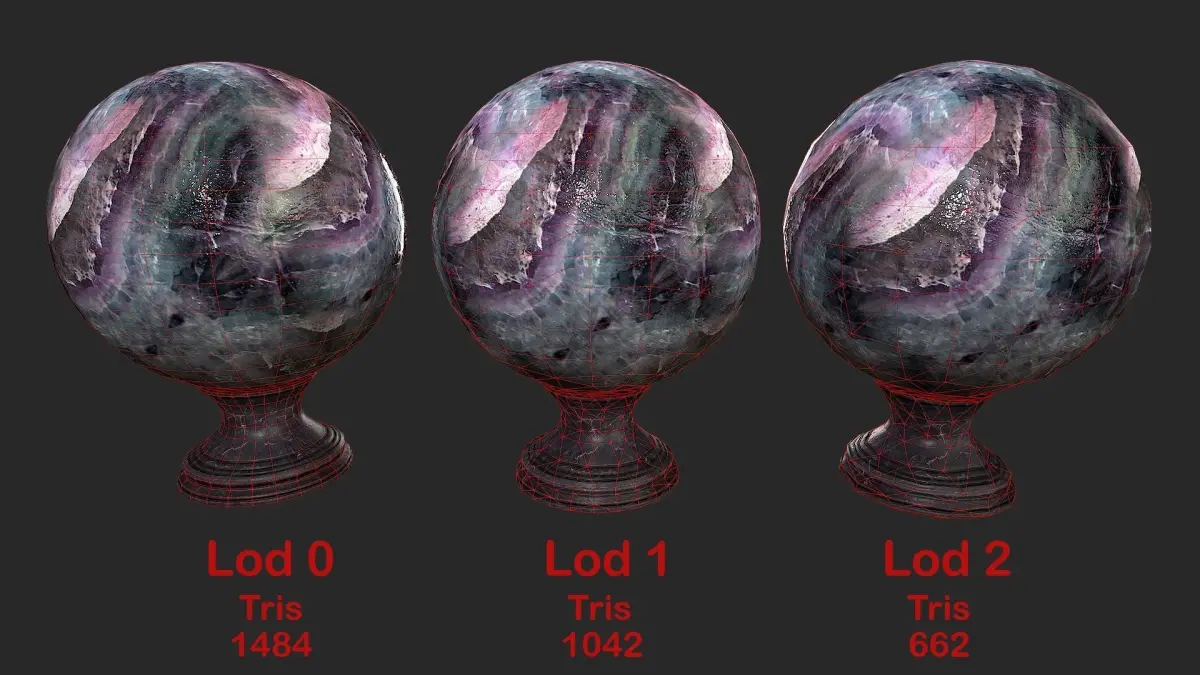 - Faces: 764 (LOD0),1042(LOD1),662(LOD2).