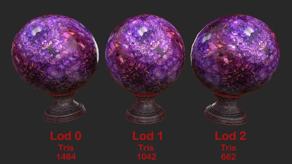- Tris: 1484 (LOD0),1042(LOD1),662(LOD2).