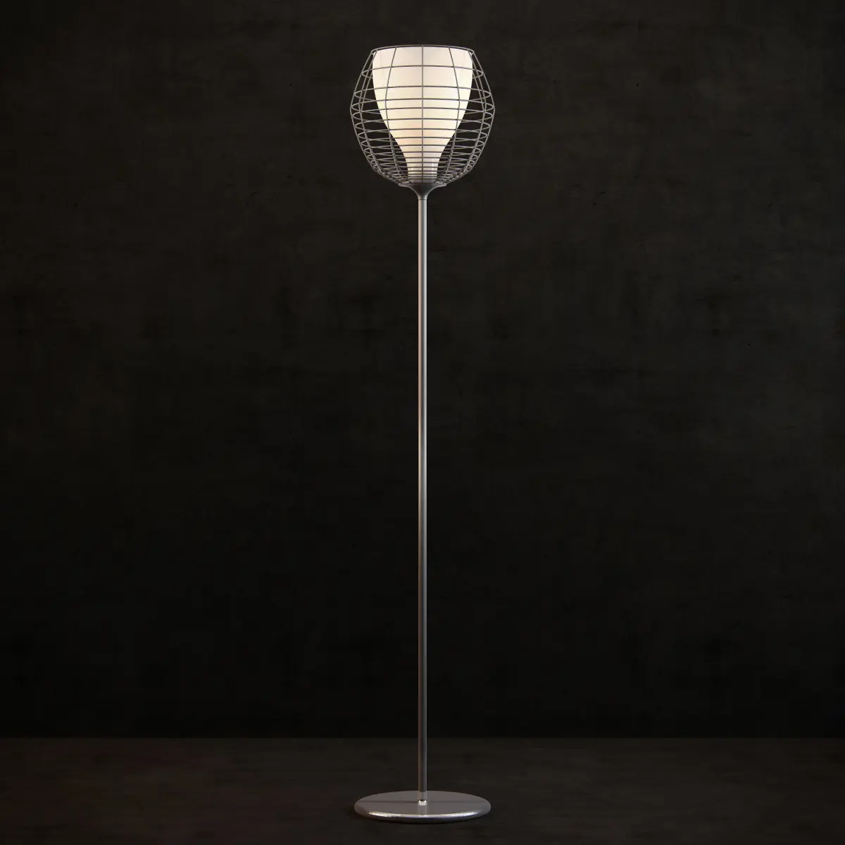 In the floor lamp version Cage is available with a glamour white or fashion black diffuser to which a black or white metal cage is applied to