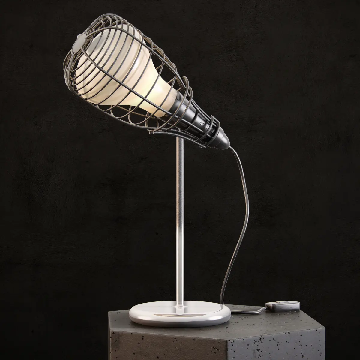 quirky desk lamp. With its chromed support, Cage Mic looks a little like a slightly retro microphone. Cage Rocket, on the other hand, resembles a