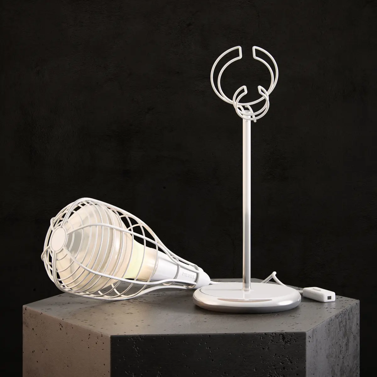 Like a real building site lamp, the practical Cage table lamp can be hung, moved or placed on any surface or on the floor or it can be used as a