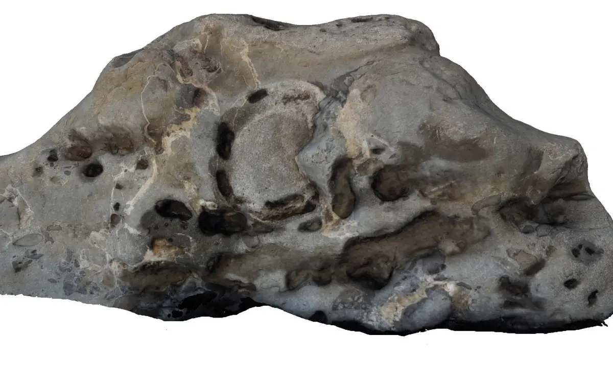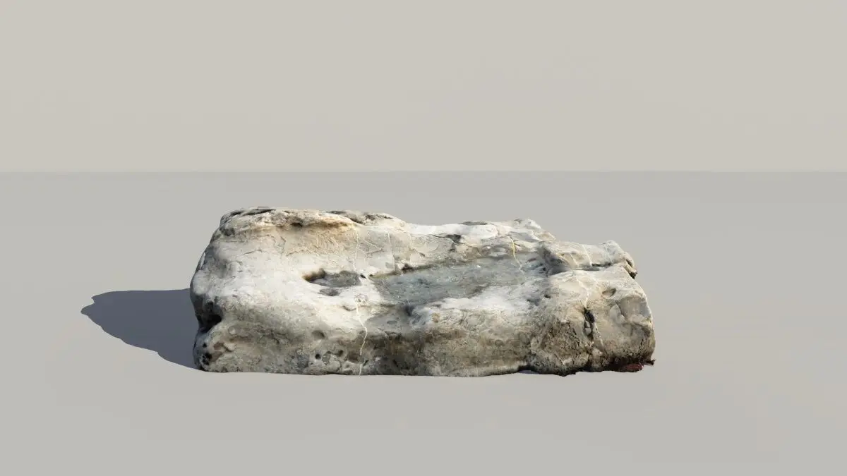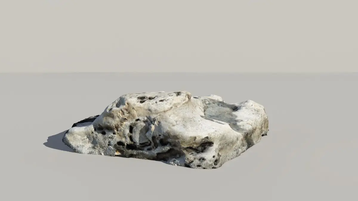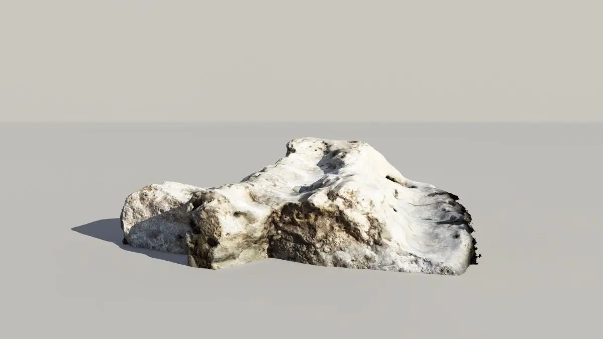 A photogrammetric scan of a rock containing fossilized whale or dolphin vertibrae as well as other smaller bones. The real world rock is found off of the coast of Central California. The fossils date back approximatly to the Pliocene.