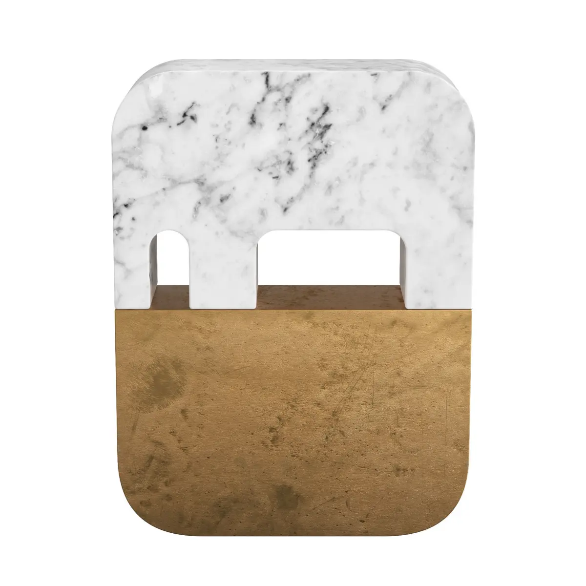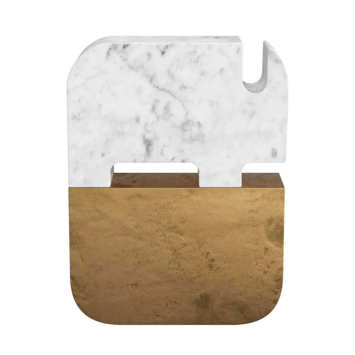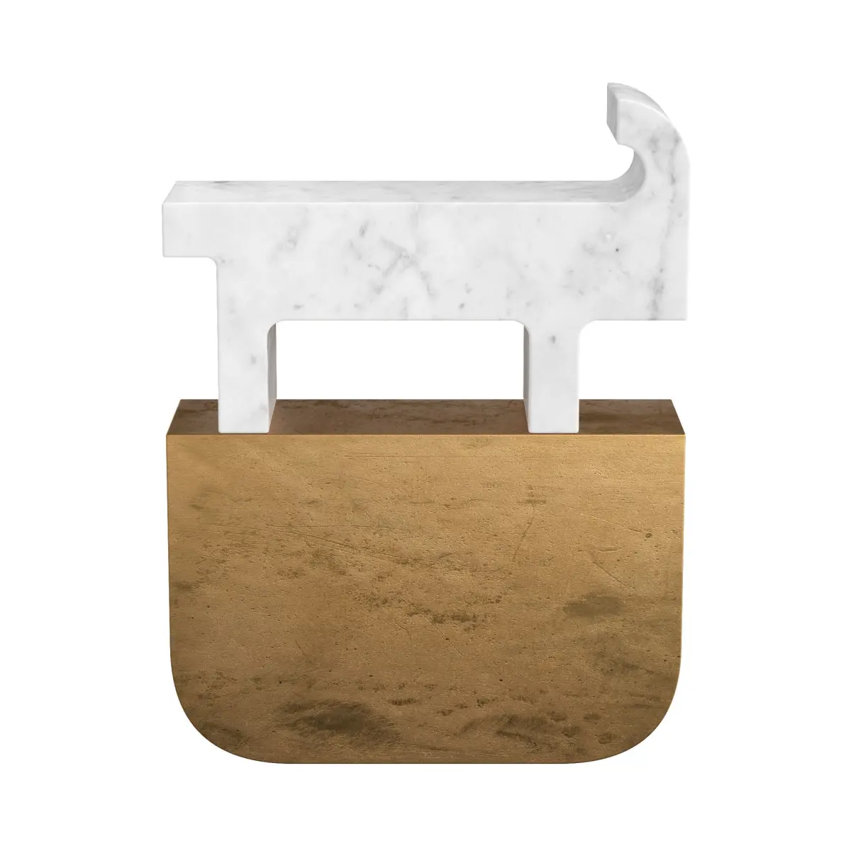 Description: Archeologists uncover an ancient stone, made of marble and metal, both tooled with great skill. There are other objects of differing geometries. Signs, symbols, sculptures bearing messages from the distant past. The marble is Bianco Carrara, with a base in a nidrall metal.