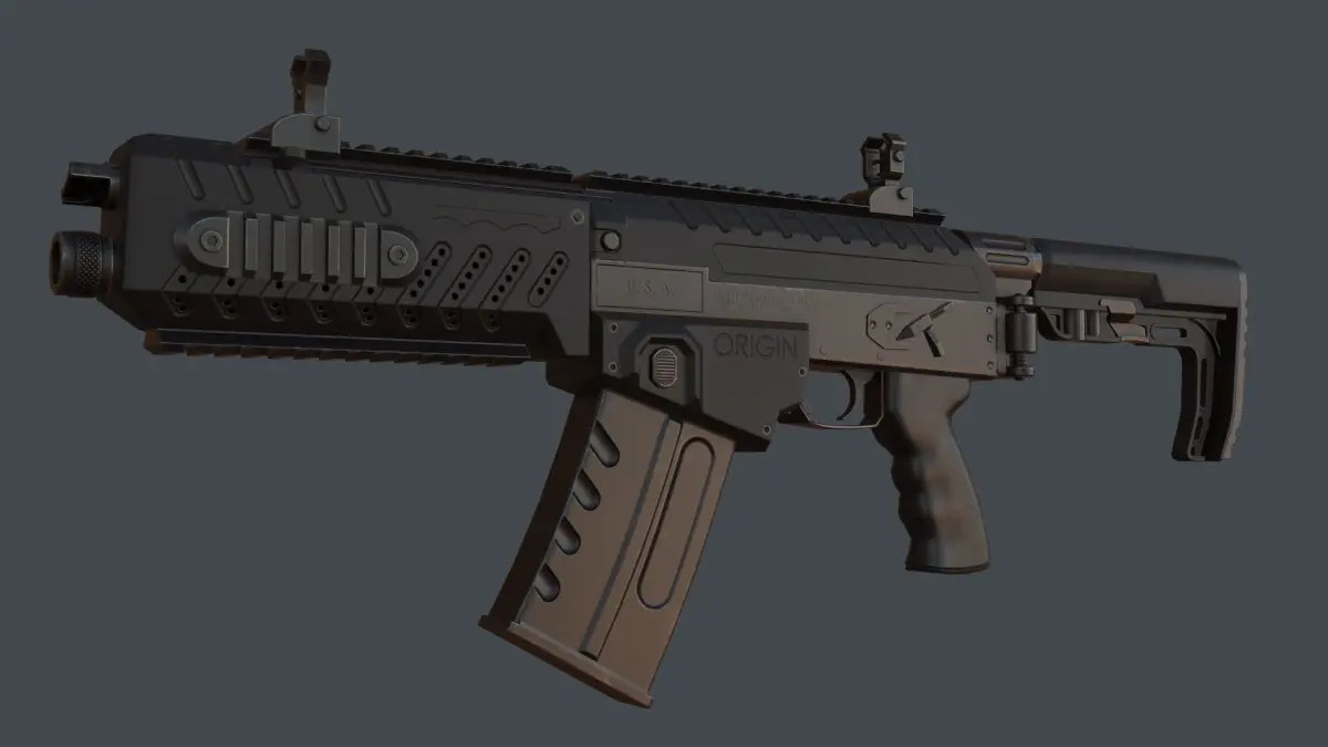 Low-poly model of the Fostech Origin 12 modern tactical shotgun. Textures are in 2k mostly, with 1k and 512x512 for some parts where it's applicable without loss of quality. Model comes with two sets of PBR metallic-roughness textures in PNG format - clean (preview pictures with flat background) and dirty (preview pictures with image in background). Marmoset preview is set up with the clean texture set.