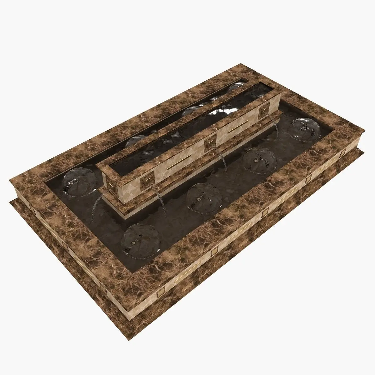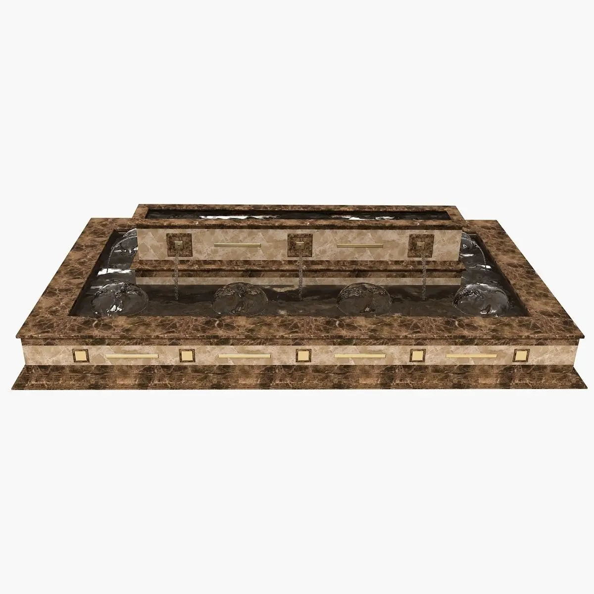 Real world scale model of marble fountain with golden elements