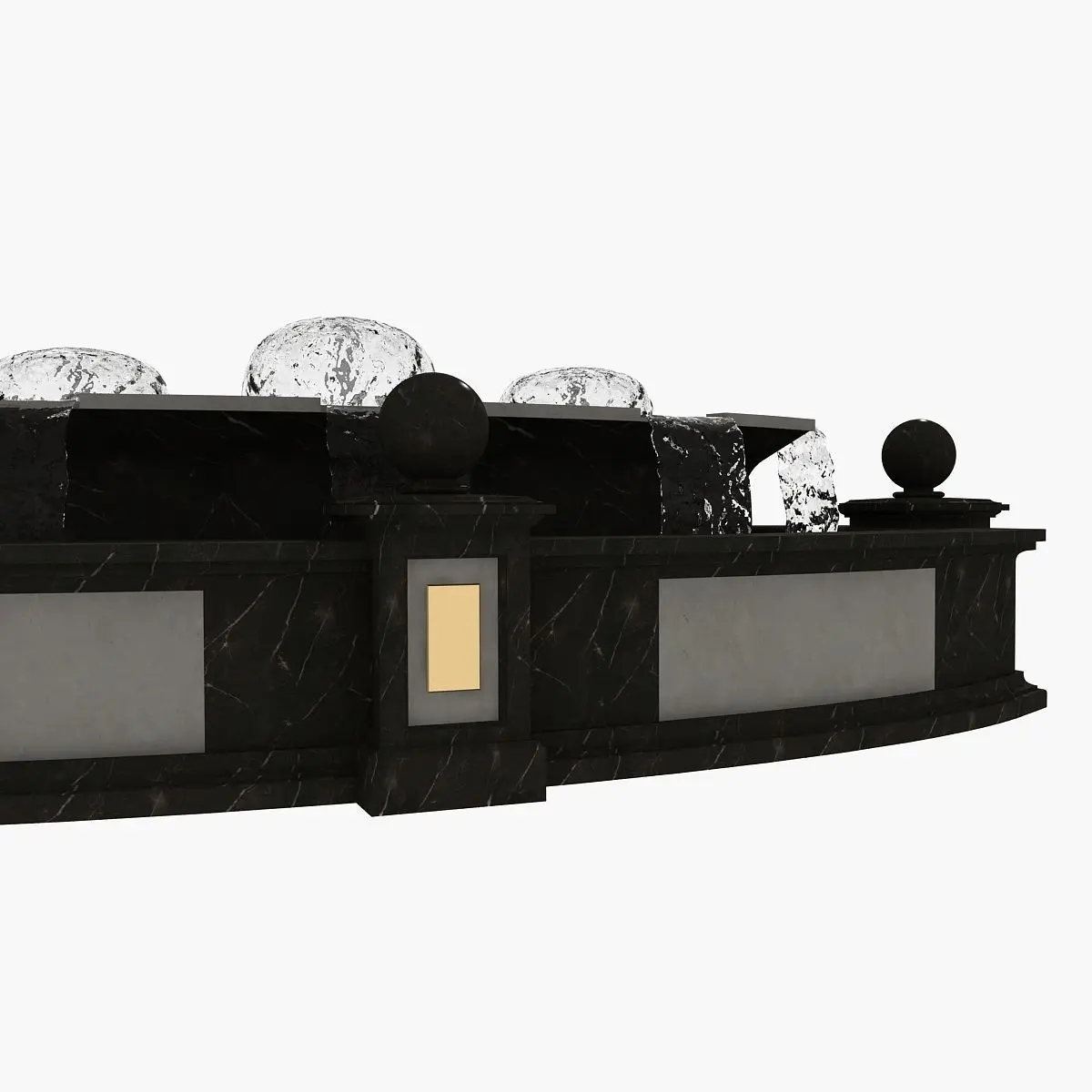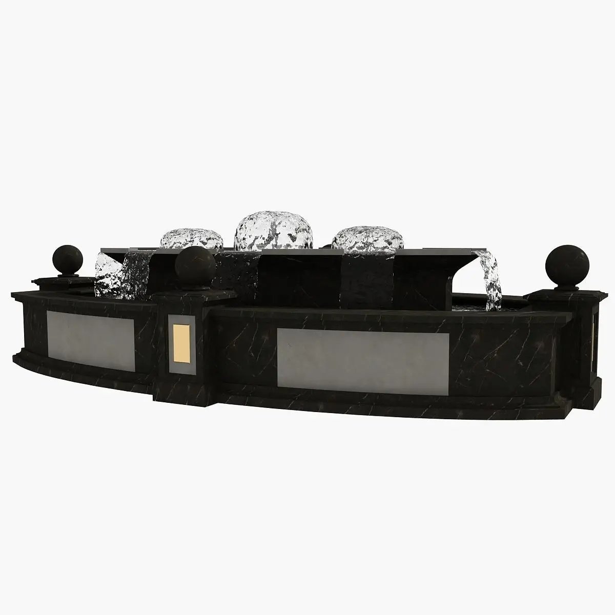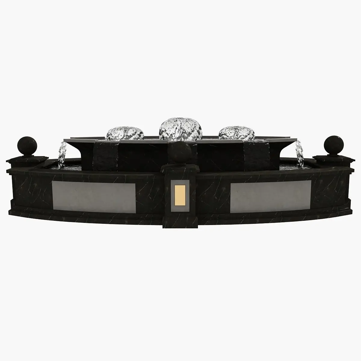 Real world scale model of dark marble fountain