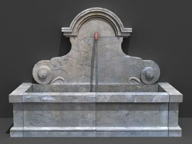 Stone fountain spilling water 3D model. Vray materials and 1024x768 textures included diffuse, bump Unwrapped UVs Available in Vray and standard materials max 9 format, C4d 12, 3ds and obj.