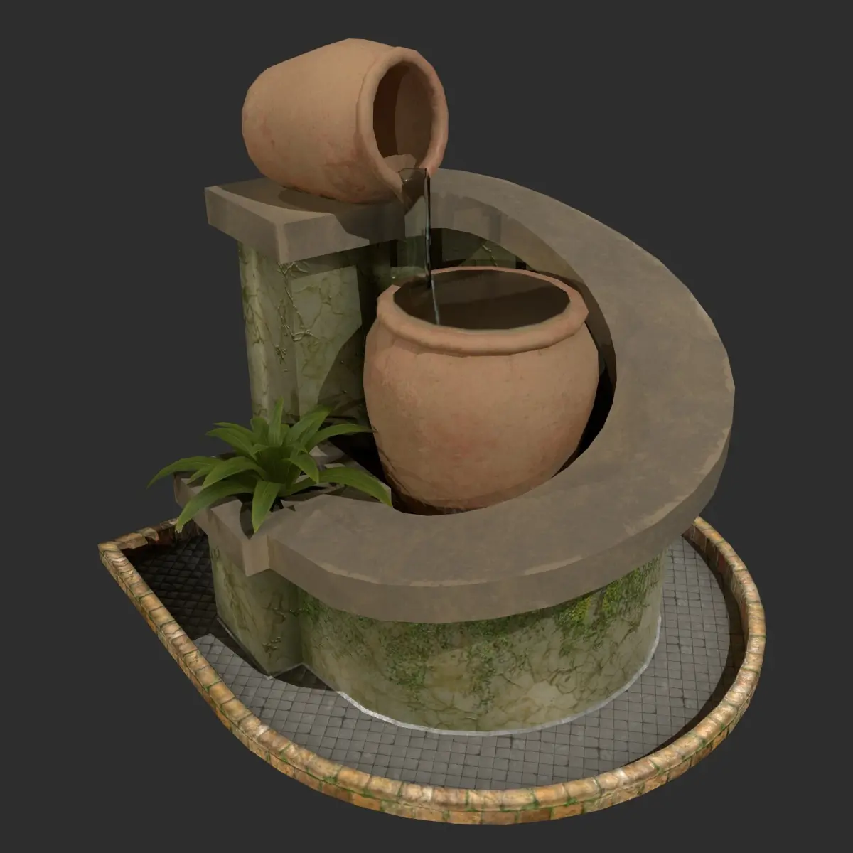 Its a low poly PBR 3D model compatible for Games and AR/VR works. It allows you to decorate your scenery by a well looking water fountain.In this model divided three texture parts.Fountain,Fountain Floor,Grass and Ivy.