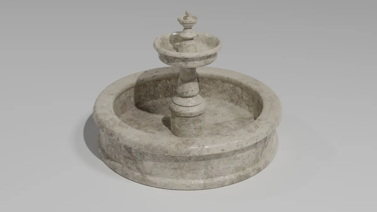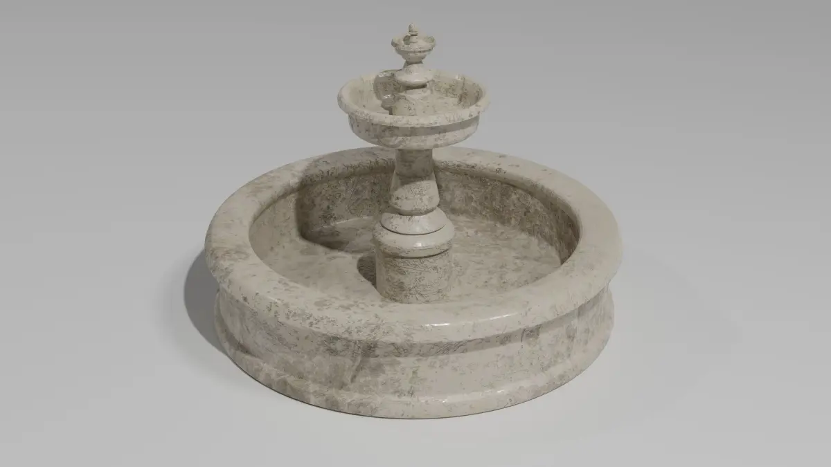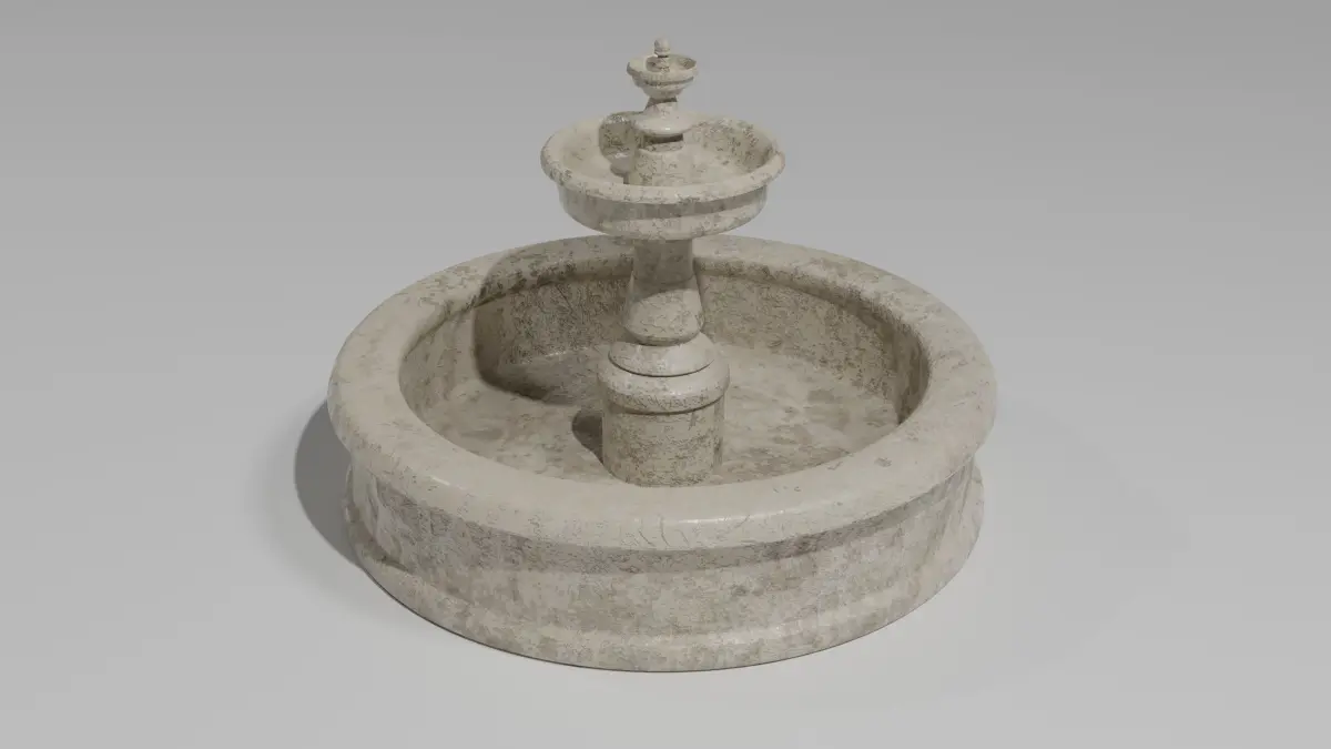 Fountain with three bowls model. Consists of 21387 vertices, 21056 polygons. Model has dimensions 2.1mx2.1mx1,5m. Texture resolution 4096x4096. If you have problems with textures or materials, you can add them yourself. It is provided with this file.I have included some other file formats (fbx, obj). This model have a polygon mesh and uv maps. The model may contain a small number of triangular and N-gon polygons. The archive contains 2 sets of texture maps(fountain without damage and fountain with damage).