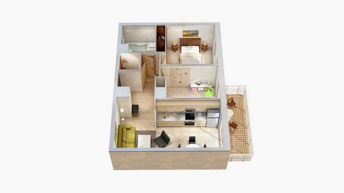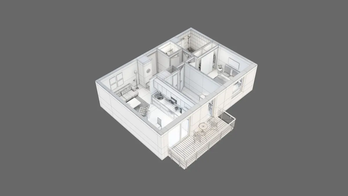 Four 3D Floor Plan Scenes with light rig