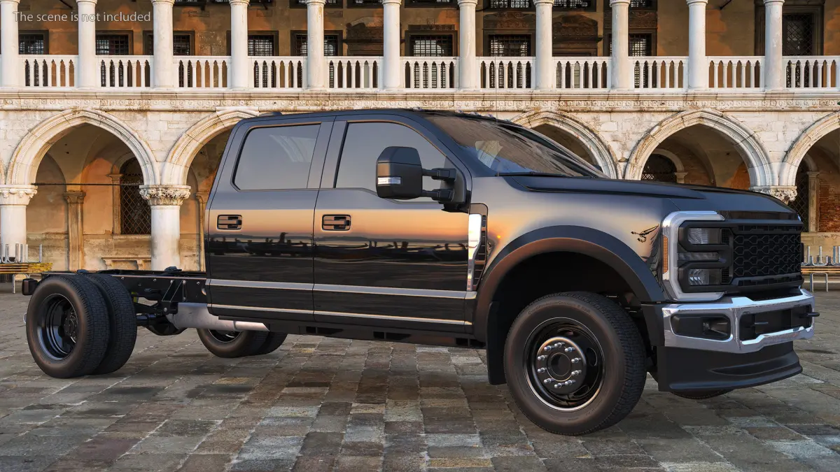 Four Doors Black Chassis Cab Rigged for Cinema 4D is a 3D model of powerful heavy-duty truck chassis (versatile vehicle with just chassis rails and a cab).