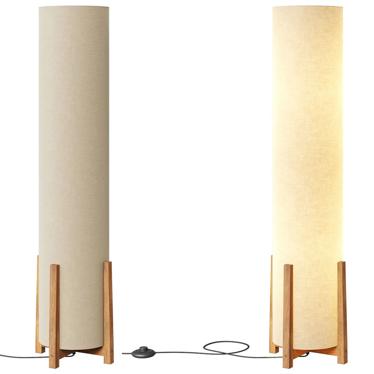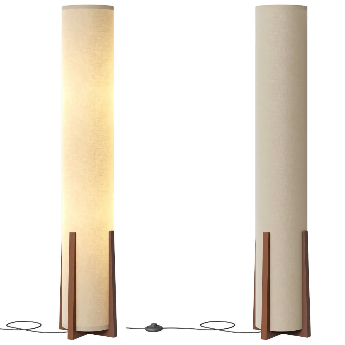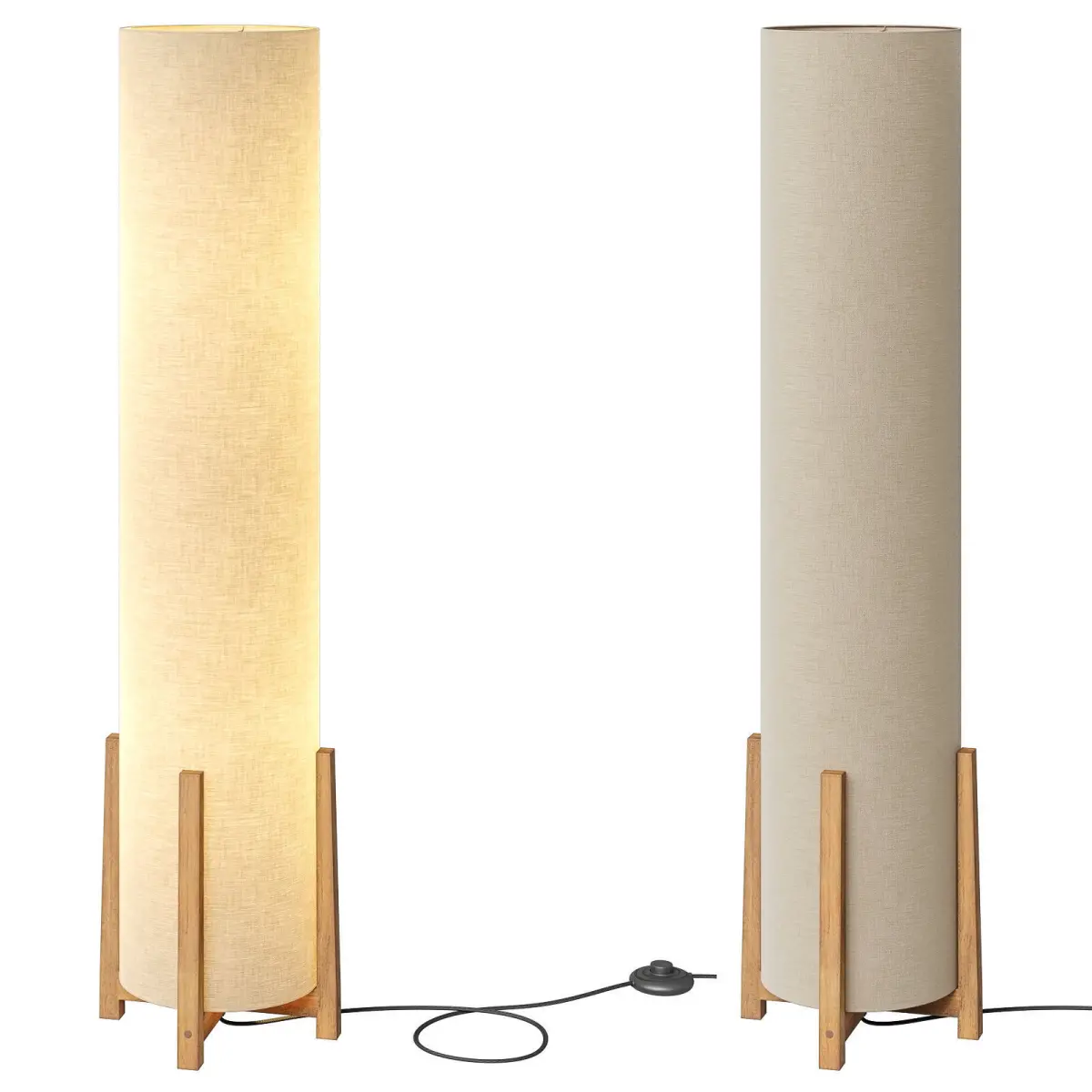 All Modern ParkerThis column floor lamp will add a contemporary look to any space with its elegant design and unique lampshade shape.Made from engineered wood, it features a convenient foot pedal and cord switch for easy operation.This plug-in lamp with included bulb is ready to light up your room in style.https://www.allmodern.com/lighting/pdp/parker-48-in-farmhouse-2-light-led-energy-efficient-floor-lamp-with-beige-fabric-cylinder-shade-a000209451.htmlD D24.1 x H122sm