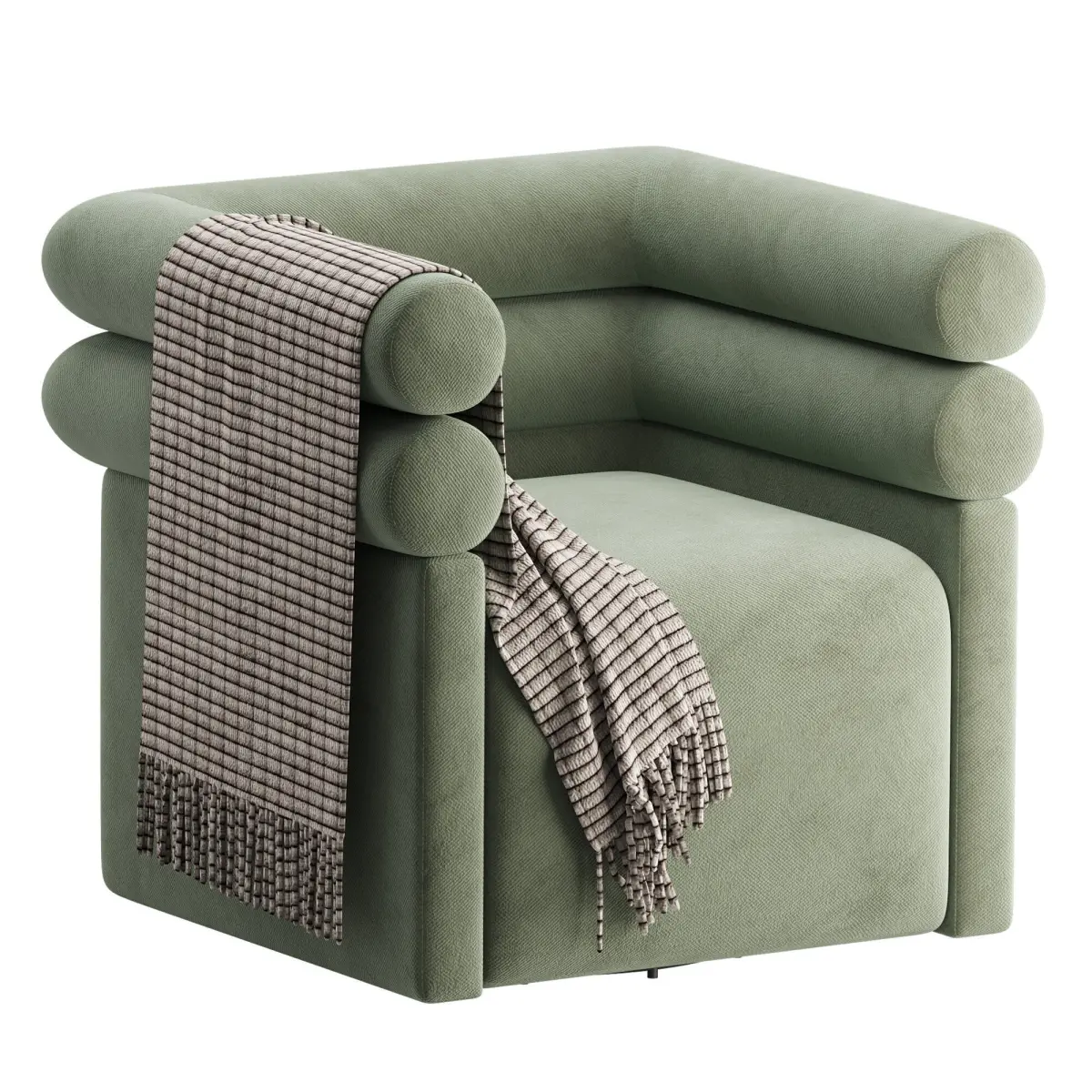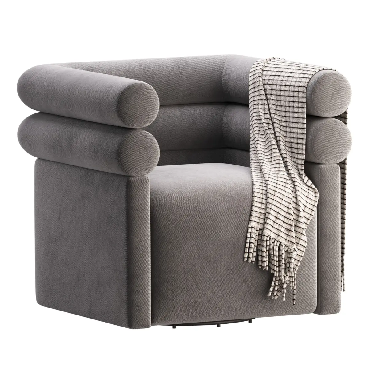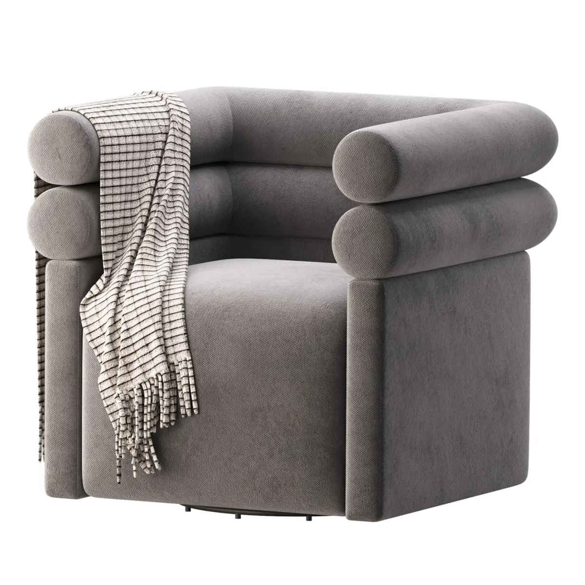 Name: Four Hands Evie Swivel Chair Hampton CreamType: modelFormat: 3Ds Max 2016Export: FBX, OBJRender: Corona (10)Polys: 37344Verts: 39793Units: MillimetersDimension: 879.03 x 878.42 x 847.3Description:The Four Hands Evie Swivel Chair combines bold geometry with plush comfort, making it a standout accent piece in any contemporary interior. Featuring distinctive cylindrical arms and backrest, the chair is upholstered in a soft, Hampton Cream fabric that enhances its sculptural form. A stylish woven throw adds a touch of coziness and contrast. Ideal for modern living rooms, reading corners, or creative spaces, this swivel chair provides both visual intrigue and functional seating.