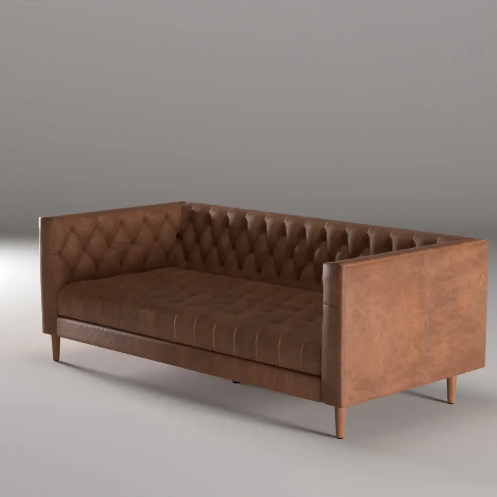 Realistic Details: Rich leather texture, soft cushion creasing, and detailed stitching