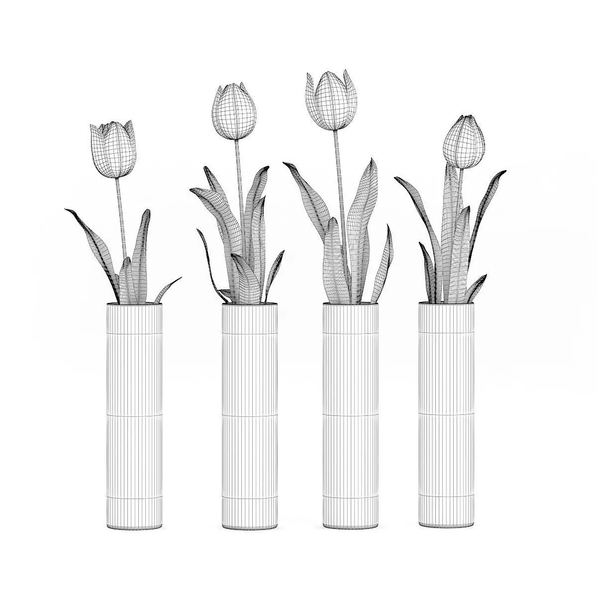 Four Tulips in Glasses 3D model