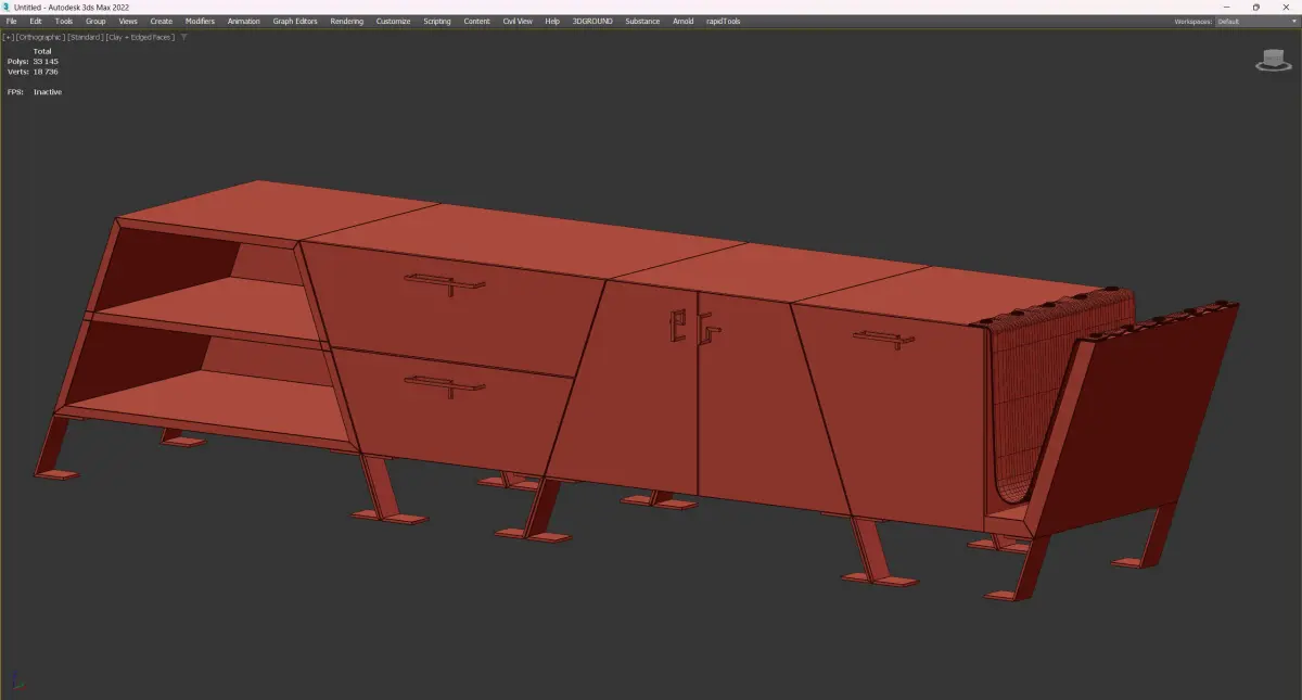 Name:FOURMOSA SIDEBOARDVersion: 2013Units: MillimetersDimension: 2599.49 x 543.63 x 560.39Polys: 33 145Model Parts: 1Render: V-RayFormats: 3Ds Max 2013, OBJ