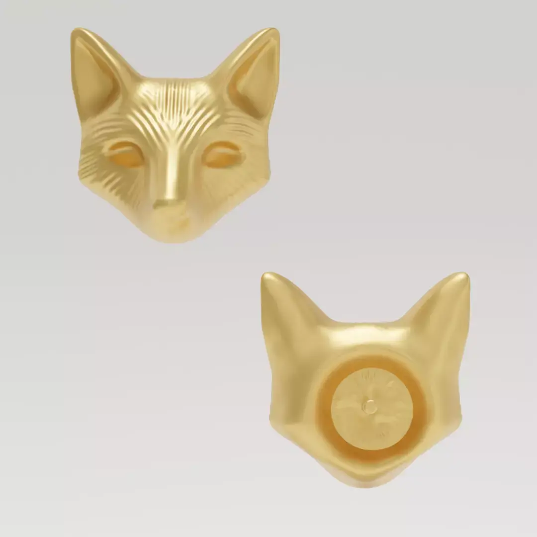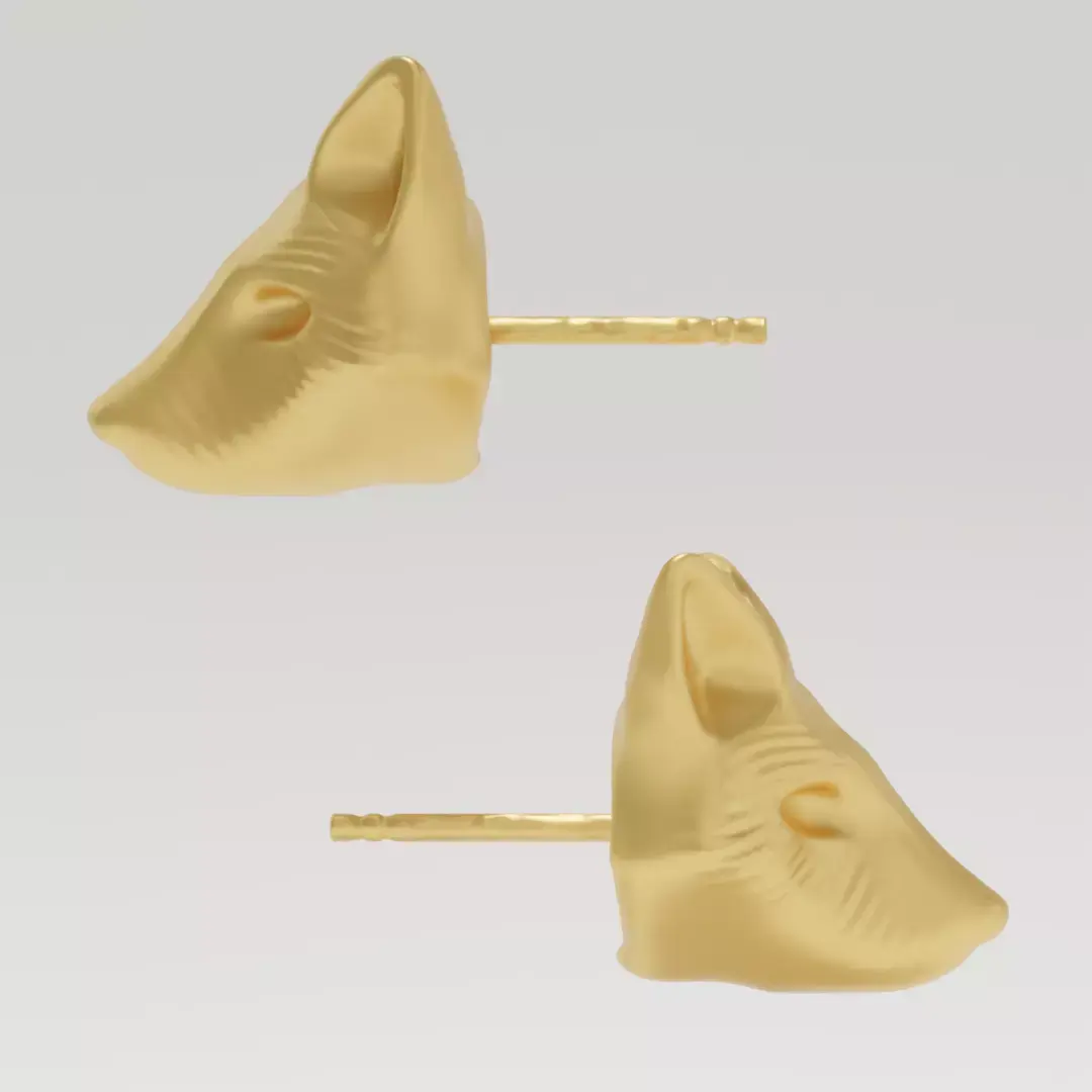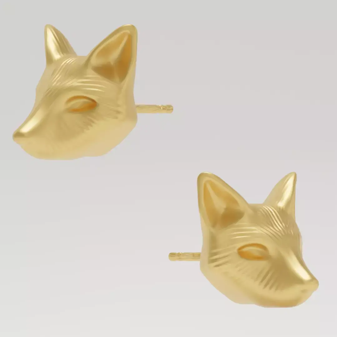 Fox Head Earrings - 3D print ready or to render You will find a version with wires for the render, a version without a sprue in case it's needed, and a version with a sprue for easier casting.