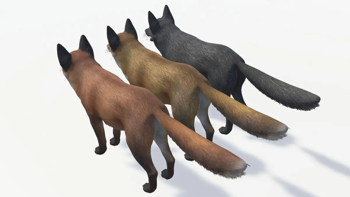 Attack (bite, move bite, front, left, right, jump, down), hit (front, back, middle), death (left, right), digging (start, loop, end), idle 1-7, eat, eat tear, drink, lie 1-2, lie belly 1-2, sleep, sleep belly, 15 stages jump (start, start forward, start place, fly up, fly up forward, fly horizontal, fly down high, fly down high forward, fly down low, fly down low forward, land, land forward, land place, fall edge, hooked and climbed), jump (forward, run, place), crouch move (front, left, right, back, back left, back right), crouch (idle 1-2, turn left, turn right), walk (front, left, right, back, back left, back right ), trot (front, left, right), run (front, left, right ), run fast (front, left, right ) swim (enter, front, left, right, back, back left, back right ), turn (left, right), turn 180 (left, right ), sitting (start, end, idle 1-2), defecation, scratch ear, etc.