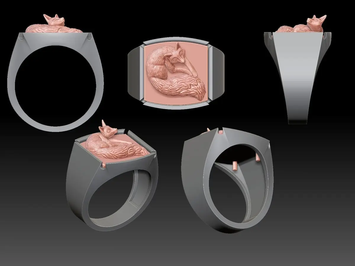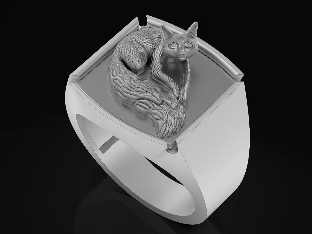 Home Catalog Fox Man Ring Sculpture jewelry Gold silver 3D print model