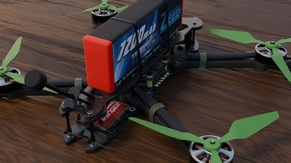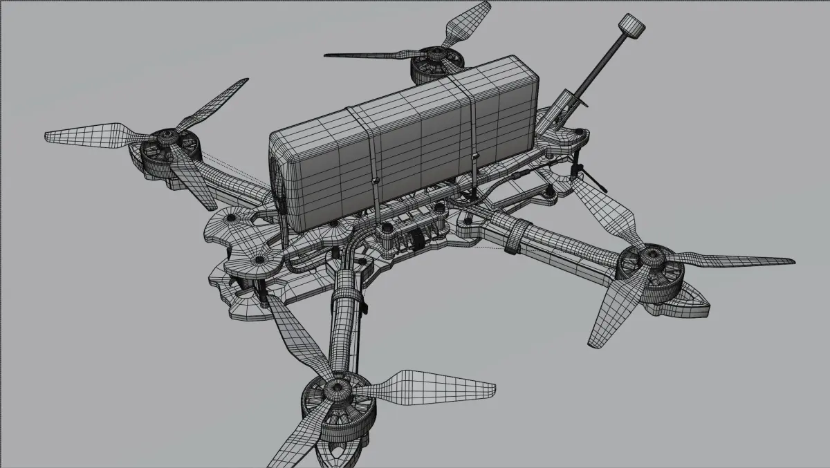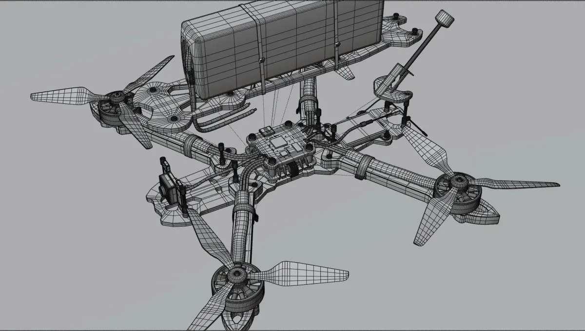 Each component of the drone is modeled separately, making the model disassembly-friendly.