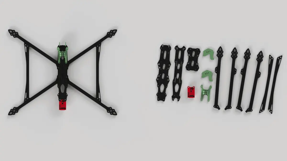 Ideal for tactical use, including one-way missions, this frame keeps weight low while offering the strength needed for larger builds.