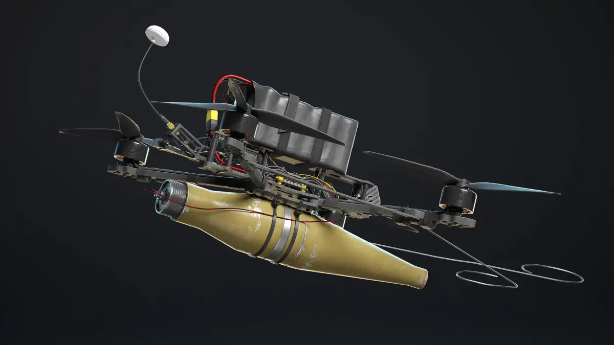 This is high-detailed game 3d-model of military UAV FPV Drone Kamikaze based on 10 in frame. The drone equiped PG-9S anti-tank grenade.