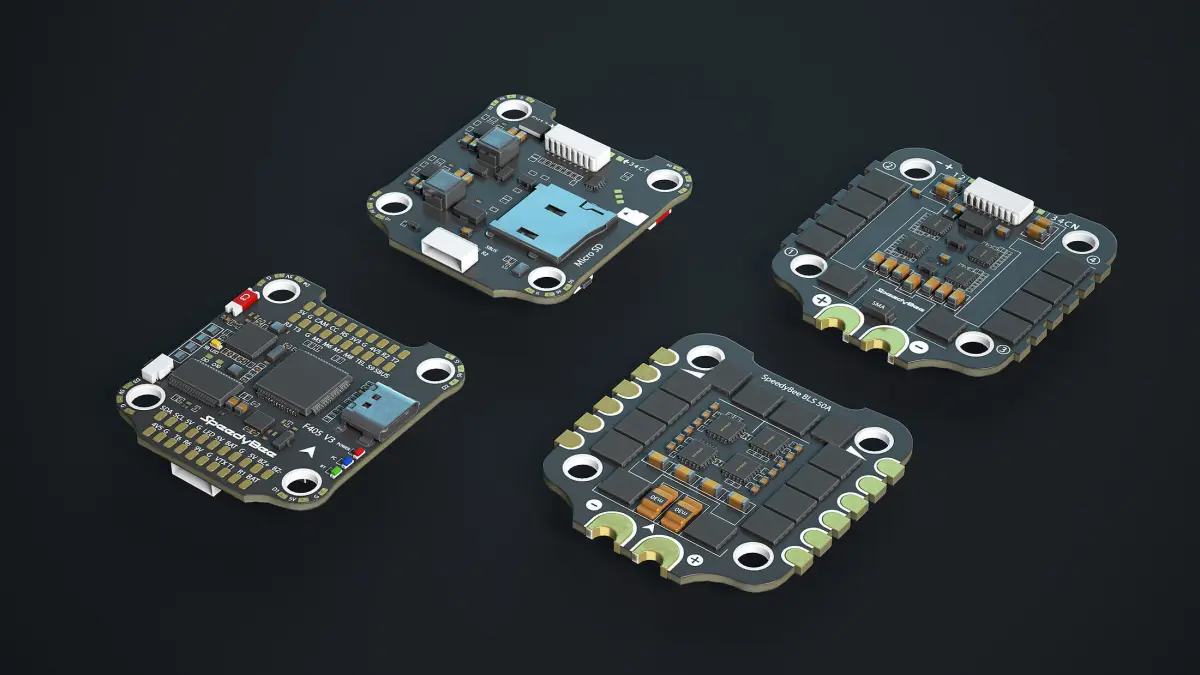 - Stack with SpeedyBee F405 V3 flight controller + ESC BLS 50A (30.5x30.5mm)