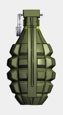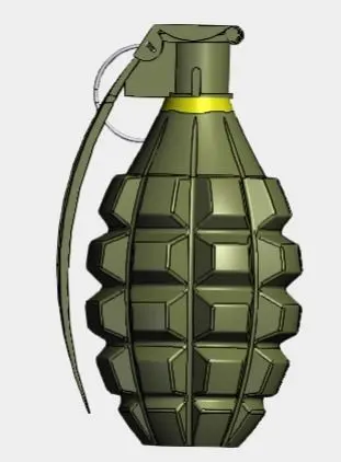 noun. a grenade with a heavy metal casing that shatters, on exploding, into fragments that travel at high speed and with great force.
