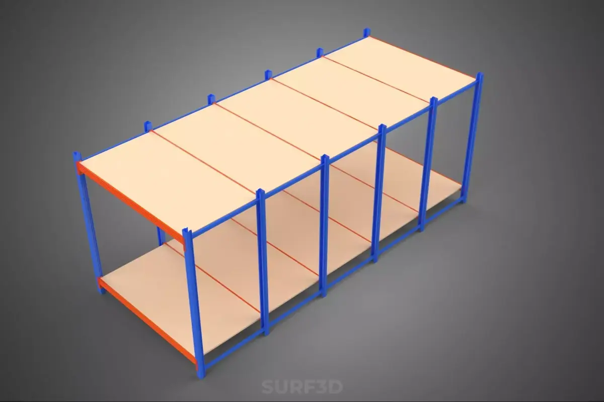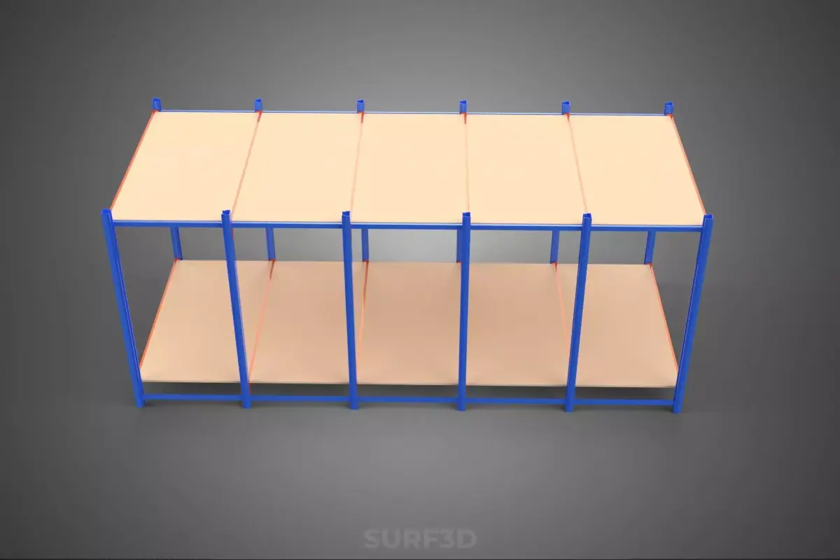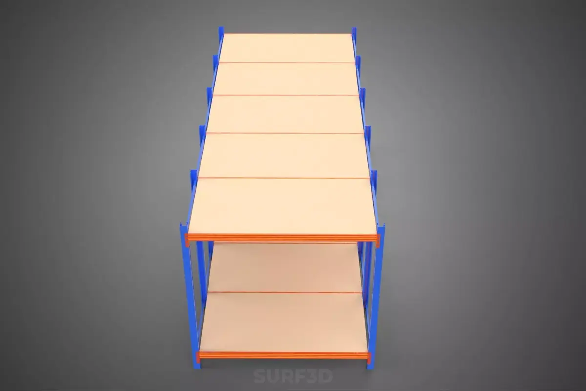 - Shelving Units: These are the flat surfaces upon which inventory is placed. As noted, they are commonly wooden panels, but can also be metal mesh, wire decking, or solid steel, resting upon or integrated into the horizontal metal beams.