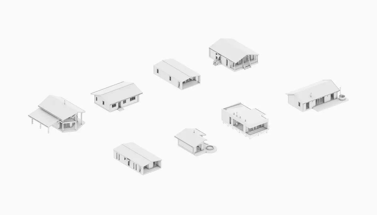 These are models of small frame and modular houses. The collection includes 7 one-story and 1 two-story house. 3D models are made in Archicad 25 version. The .pla archive is attached.AutoCAD (.dwg).obj3D Studio (.3ds).dae.fbxobj.Sketchup 8 (.skp)archcad 25.pla