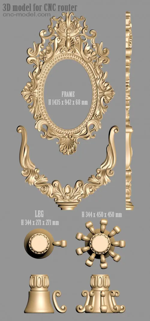 3D Carved Frame Mirror for CNC and Visualiation