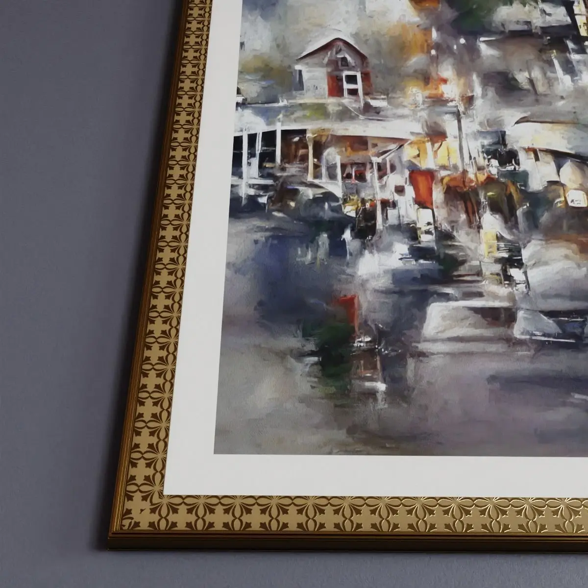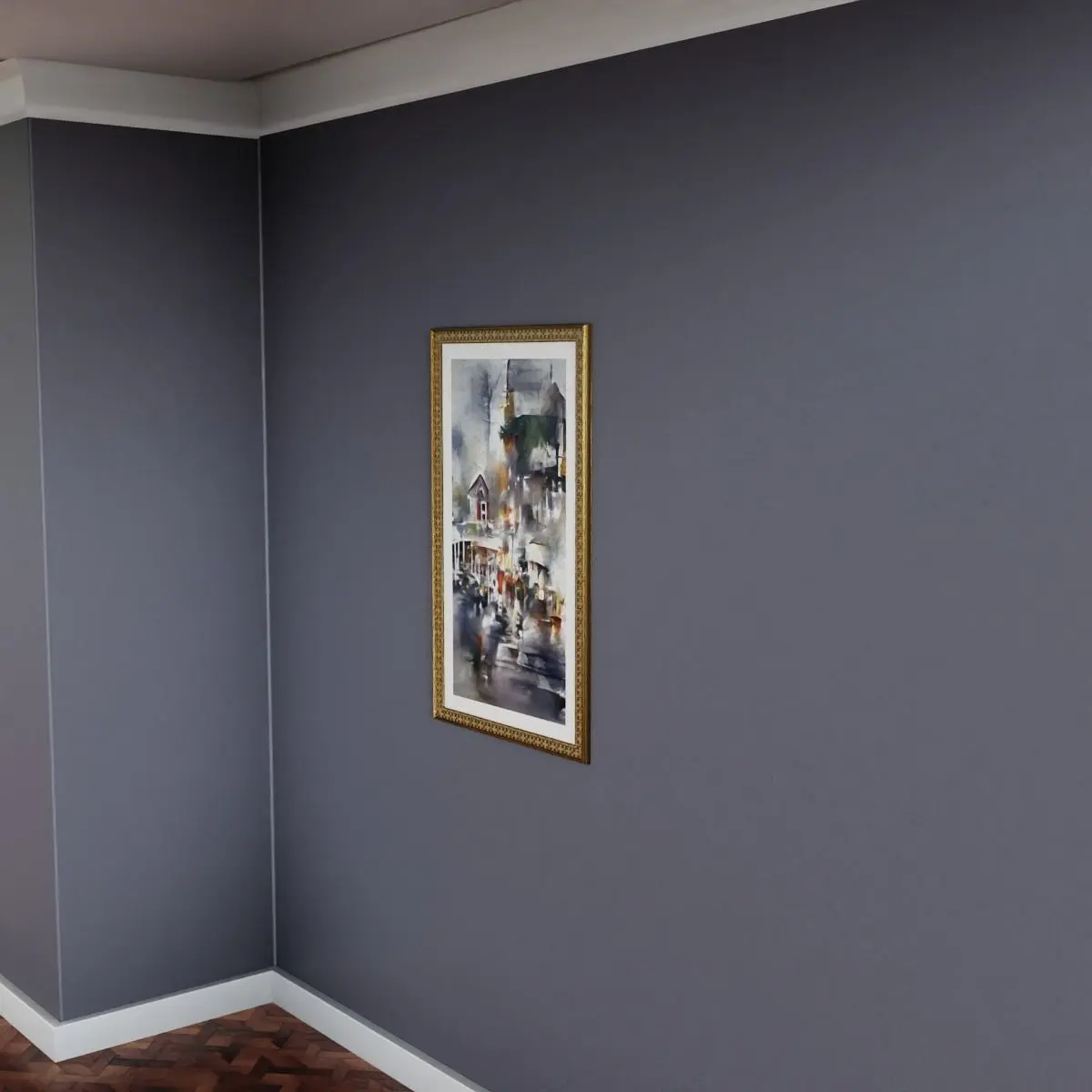 - Original watercolor style digital artwork. 3D frame with glass panel for added realism. Ideal for interior design or architecture visualization scenes.