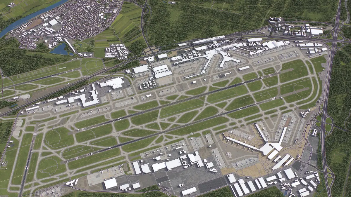 - Assigned Textures — Trees, vegetation, land-use areas, and airport surfaces come with textures assigned
