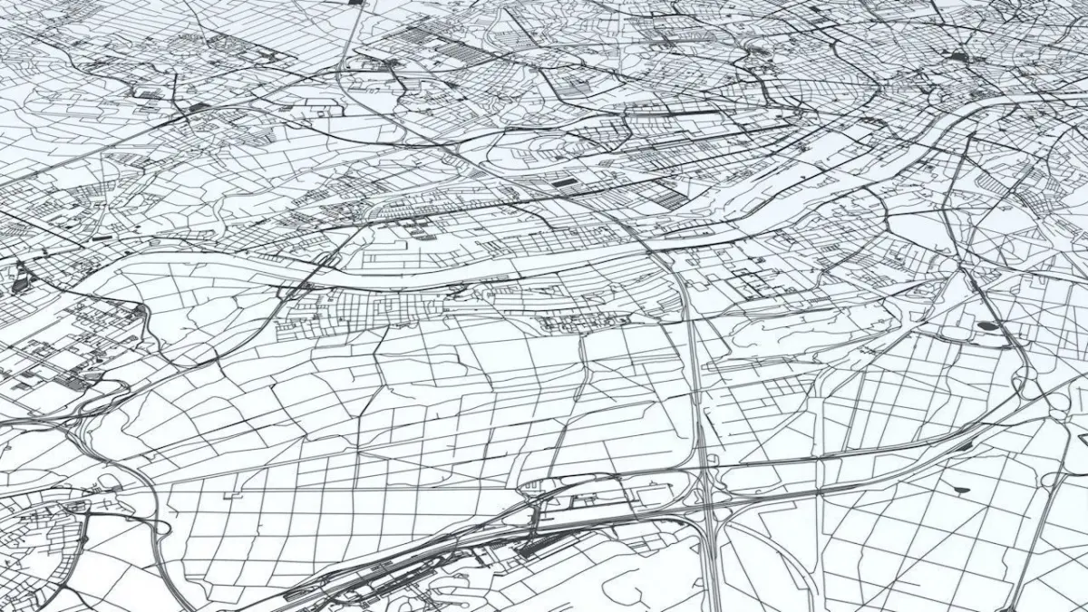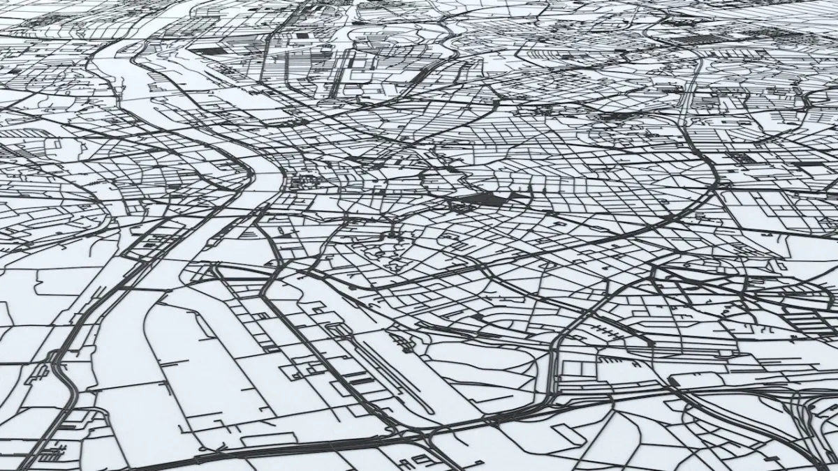 - the model is positioned on a flat surface (road network is on the “floor” - no elevation data included)