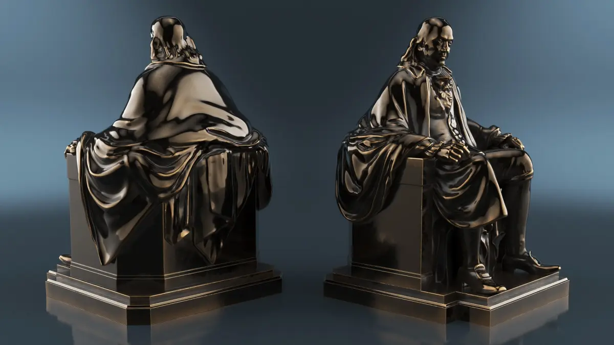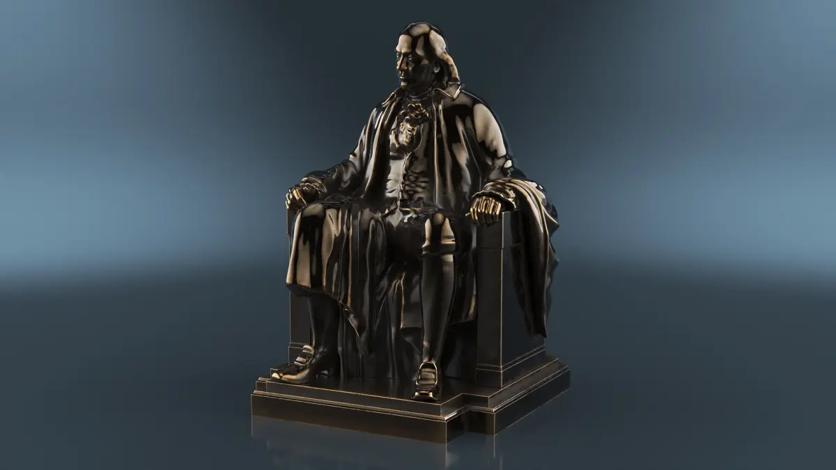 Franklin Seated Statue Large Bronze is a three-dimensional model of seated statue representation of Benjamin Franklin, the renowned American polymath and Founding Father.