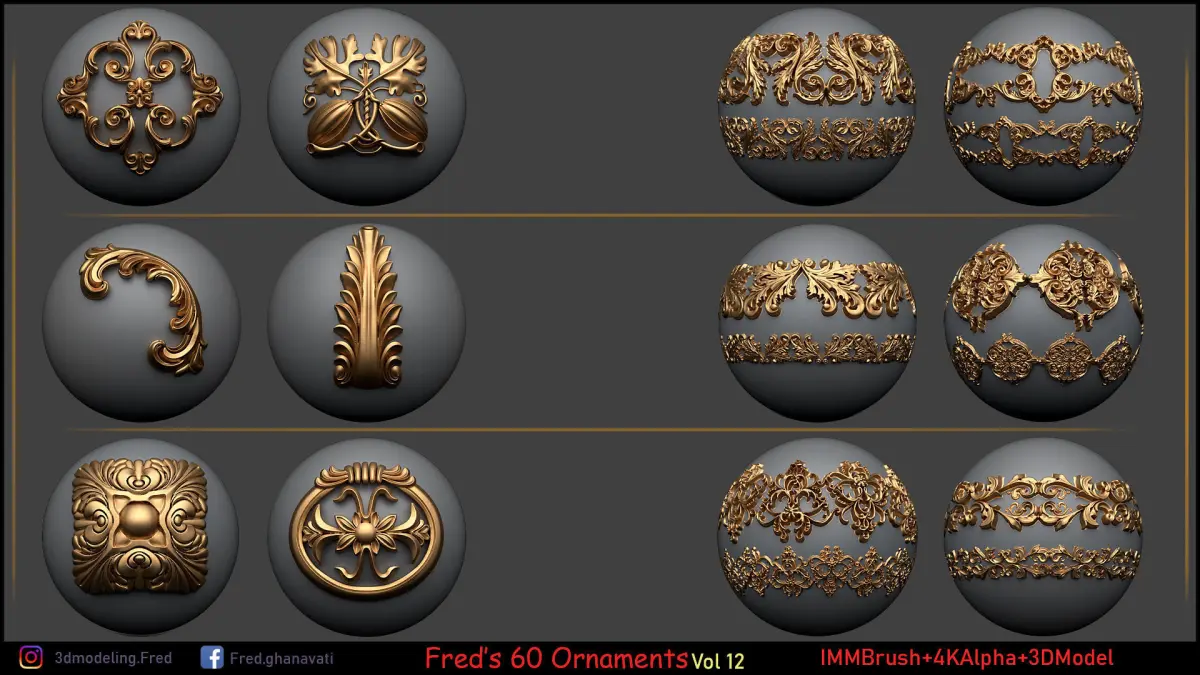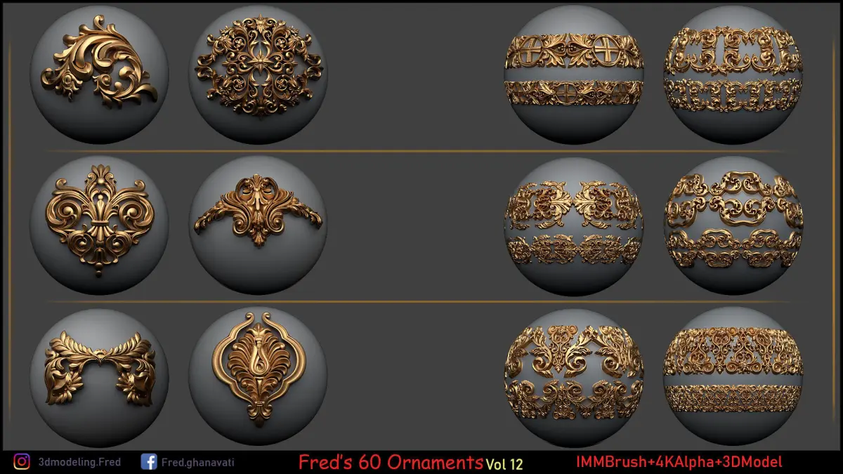 Including : IMMBrush + StandardBrush , 16 bit Alphas/HeightMaps + 3d modeles (LowPoly-HighPoly) + mask(Black/White Alpha) There Are 4 Diffrent Category For This Set Which Is Organized Carefully .
