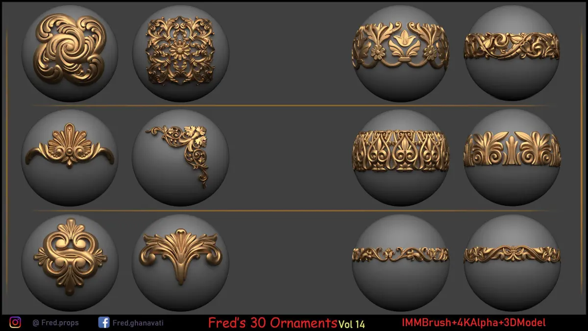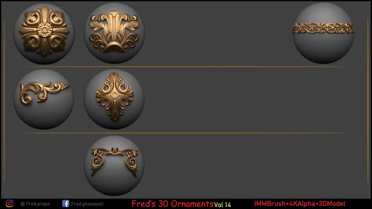 Freds 30 Ornament Brush Alpha Vol 14 Low-poly 3D model