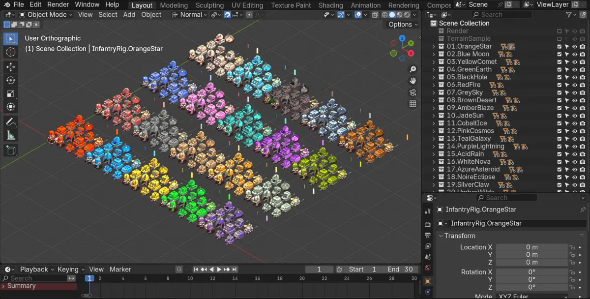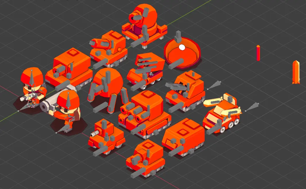 FBX file of all the land units but only of the Orange Star Army (file includes animations).