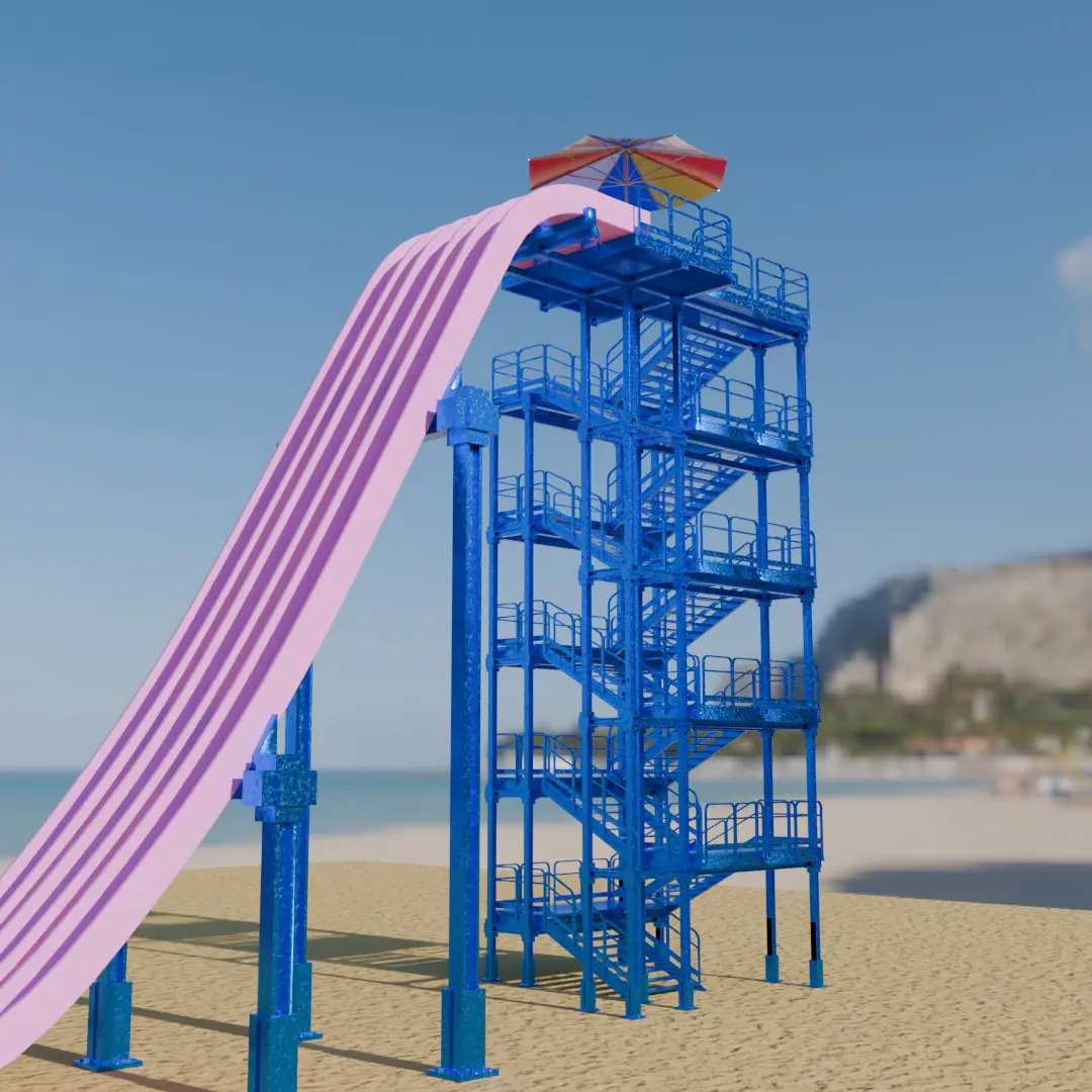 This 3D model of the “Freefall Water Slider” recreates a powerful vertical drop, and its carefully modeled structure in Blender realistically expresses the tension and exuberance of the slide. It is perfect for a midsummer leisure facility, a pool scene, or a corner of an amusement park.