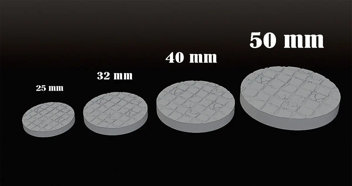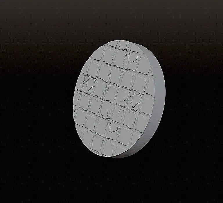 Download this free fantasy-style base featuring damaged stone floor tiles, perfect for giving your miniatures a ruined or ancient battlefield vibe. This single base design is included in four standard sizes – ideal for tabletop gaming and display models.