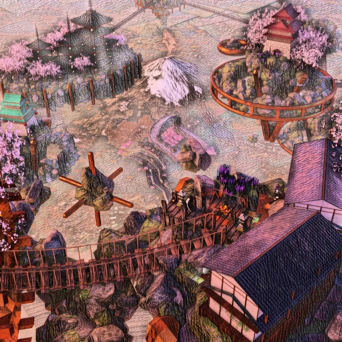 a free model of a sky village, inspiried by castle in the sky (1986)